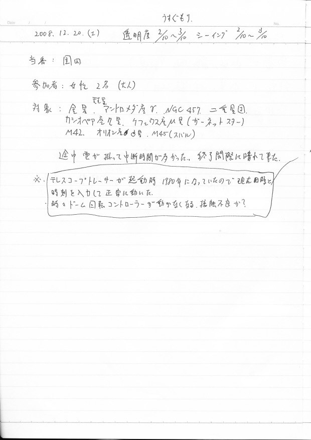 | 天体観望会 | 西与賀コミニュティーセンター | 記録ノート画像⇒ 1 近藤、園田 | |||
