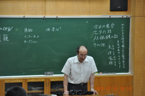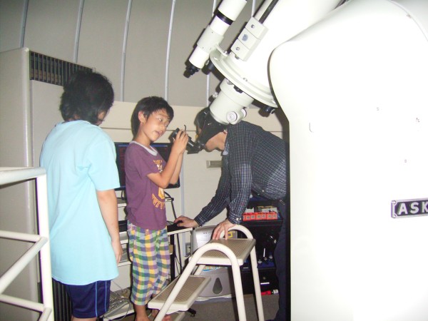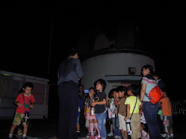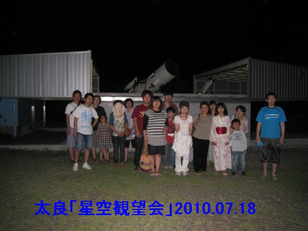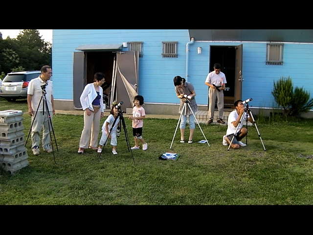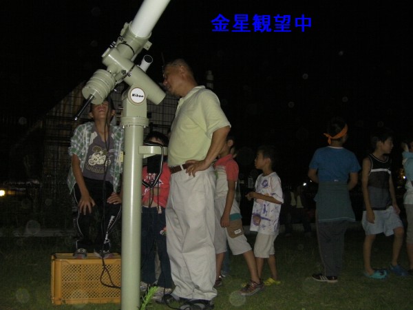 | 写真はありません | 8月4日 地球市民の会・夢の学校をつくる会 (富士町) 20:00〜21:30 前半は雲が多く、金星・土星も雲の合間から時々・・と言う感じで、また西天低く条件は良くなかった。この所、観望会は天気に天気に恵まれず久しぶりに星を見ましたが土星は随分と低くなり土星の今シーズンも終わりのようです。 観望対象者16人+スタッフ10名 スタッフは日本、韓国、台湾、ロシア等からのホームステイ者も5人で、英語やハングルなどが飛び交う状況でした。惑星は今一でしたが透明度は抜群で夏の銀河が印象的でした。 写真はありません。 担当は副島 |