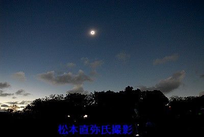 7月12日 イースター島日食の速報です。 イースター島へ遠征中の川野さんより速報が入りました。 e-Mailによると 『朝のうちは少し雨も降りましたが皆既中は完璧でした。おかげさまで(副島さんがこなかったからではありませんよ) 皆喜んでいます。 ここまでは強行軍でしたが明日からはモーレア島でゆっくりできます』 との事でした。観測成功おめでとうございます 写真1、2、 |