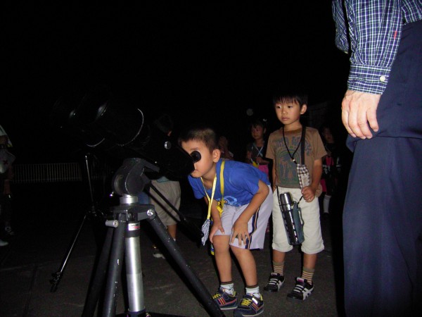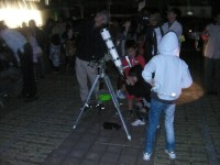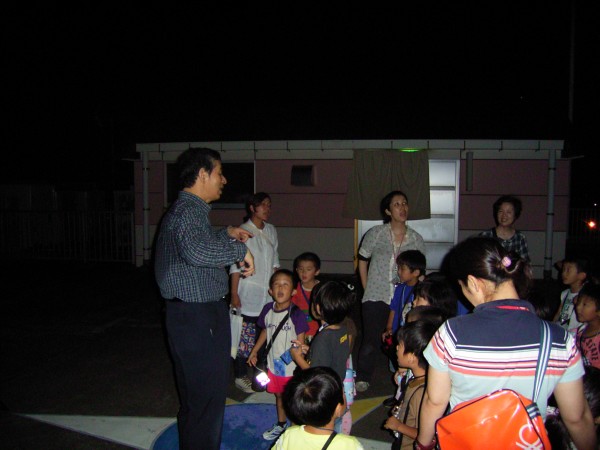 8月8日 佐賀市中央児童センター(兵庫町) 19:30〜21:00 小学生を中心とした参加者でした。 最初は西の空の金星・土星の観望を行いました。途中、副島氏による星空・星座の解説があり、子供たちの質問に答えながら、アルビレオ、M17などを観望。きれいに並んで望遠鏡を見てもらいました。 参加者:約50名(スタッフ含) 担当は近藤、副島、(Photo松尾) 写真1、2、3 |