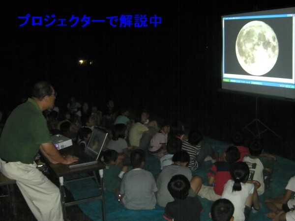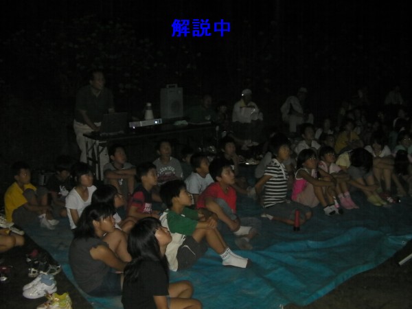 7月30日 佐賀市教育委員会三瀬出張所教育課主催 三瀬村の山中キャンプ場にて21時より開始 雲が多くて、星・星座の説明は最初の少しだけで、後はPCとプロジェクターで講演。ステラナビで今日の星空を説明。月の写真や天体現象の写真をスライドショー。 最後は拍手で終わりました。終了21:50 参加者小学生35名+大人15名 担当は副島、松尾 写真1、2、3、4、5、6 |