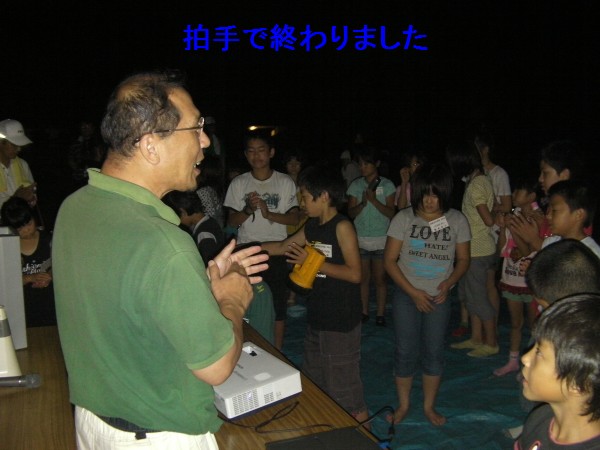 | 写真はありません | 8月22日 唐津市 浜崎小学校 雲が多く、初めに土星・金星を観望。何とか月まで観望出来ましたがその後、完全に雲に覆われて室内に移動。福田さんによりプロジェクターを使った天体教室でした。 参加者は約160名 担当は福田、古川、副島、岩本、近藤、副島 |