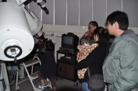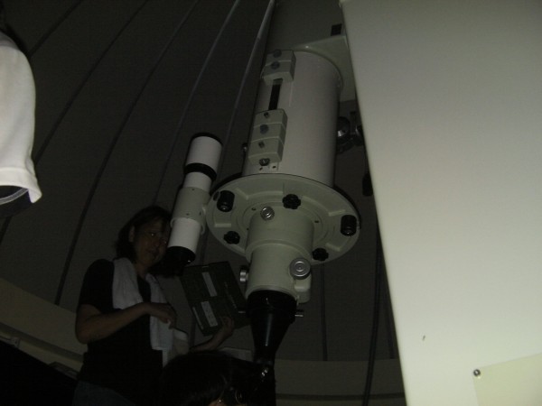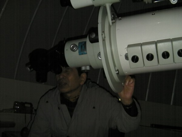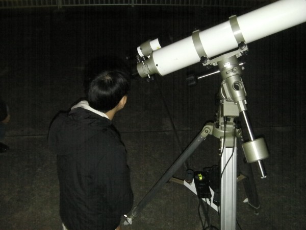 10月16日 西与賀町コミュニティーセンター(佐賀市天文台) 薄雲が広がる空でシーイングも良くありませんでしたが、20cm屈折で月、木星、天王星、アルビレオ、こと座εを観望。21:00からは携帯で月の写真撮影も行いました。中国と韓国からの佐賀大学留学生2名ほか約30名の来訪者がありました。屋上では、佐賀大学生(太田さんほか5、6名)が、ドブソと反射望遠鏡で星の導入訓練をしていました。 来訪者約30名 担当:園田、松林 写真 1 |