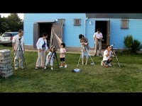 | 写真はありません。 | 8月20日 太良観望会(太良小学校 4年生) 夕方、水田さんの案内により芝生の上でピクニック気分の参加者でした。19:50頃より開始、西側わずかに晴れていたので金星を視認できました。その後、全面雲り。近藤さんがそんな中、七夕の話や宇宙に関する質問に答えました。最後、観測所内で60cm反射や15cm双眼鏡について園田さんが説明ししました。天候が回復しないまま21時前に現地解散しました。快適な観測所を楽しんでもらいました。 参加者は小学4年、保護者合わせて100名 近藤、水田、園田の2名で対応しました。 |
