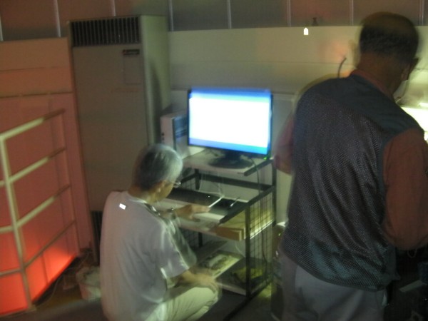7月17日 太良観望会ほか 2代目の芝刈り機(中古)が手に入りました。午前中より副島さんが組み立てしましたが、どうしてもエンジンがかからず、一旦販売店に戻して点検を依頼しました。 太良観望会の初日、ろくまるくんの光軸を急いで再調整、鶴田会長の初日の挨拶の後どうにか観望会が始まりました。60cmで見る土星に満足してもらいました。FUJINONで見る月には驚嘆の声が上がってました。参加者約20名(旅館スタッフ共) その後、草野天文台の反射望遠鏡+赤道義の設置を手伝い終わったのは18日のAM1:30でした。 写真1,2 |