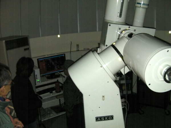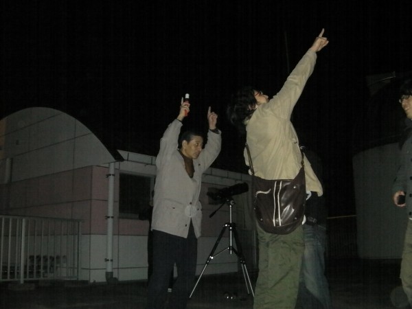 10月9日 西与賀町コミュニティーセンター(佐賀市天文台) かすかでしたが「天の川」が見える空で条件の良い観望会でした。始まりは来訪者も少なく20cm屈折でハートレイ103P彗星を導入しましたが淡くてかなり見えにくかったです。その後来訪者も多くなり木星を主に見てもらいました。20時過ぎから副島さんが屋上広場で星座の説明と25cmドブソでの観望を行いました。21時過ぎからはドーム内で来訪者持参のデジカメや携帯で木星の撮影を行いまして良い写真が撮れました。匿名の女性来訪者さんから缶コーヒーとお菓子の差し入れがありました。長年観望会を行っている副島さんも始めてだったようです。小学生だった15年ほど前によく来てましたといわれた女性(29)も久しぶりに来れれて喜んでおられました。また、佐賀大生ほか大学生も、5,6人来てもらいました。今後、学生間のネットワークがもっと広がれば良いと期待します。観望対象は木星、天王星、海王星、アルビレオ、M57、M13、M31、ハートレイ彗星。 来訪者約20名 担当:副島、松尾 |