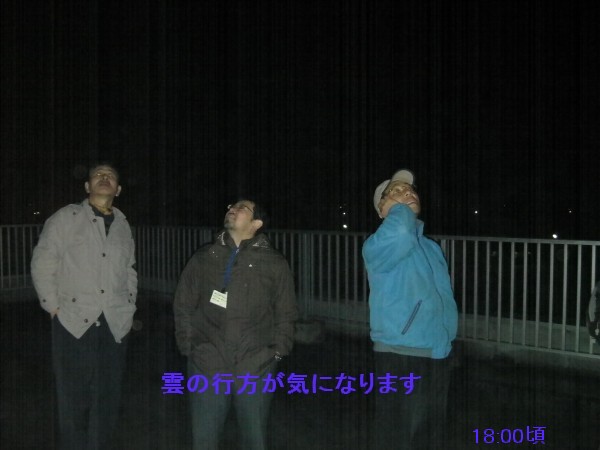 8月12日〜 ペルセウス座流星群観測会(太良観測所) 台風通過後で天気が不安定でした。夕方から21時頃までは比較的晴れていましたが、流星はほとんど観測できず、22時以降には全天の3/4が雲に覆われてました。平均的に天頂より東側に空きが見られたが25時までに眼視で10個程度しか観測できませんでした。25時過ぎには全天が雲になり回復が期待できそうに無かったので撤収しました。 参加者;鶴田会長、松林、近藤夫妻、副島、松尾+(太良町在住の一家族) 写真1、2、3 |