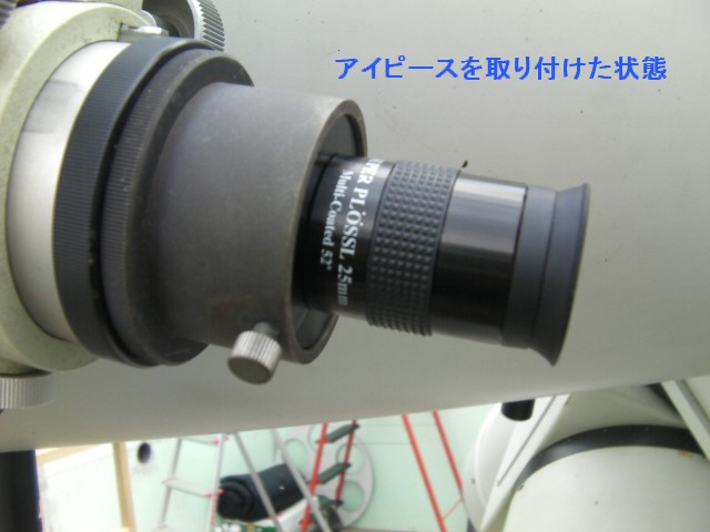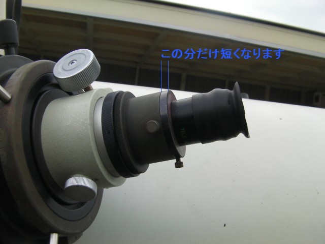 12月19日 太良観測所 ろくまるくん 太良ミカンを買いに行ったので、太良観測所までいってきました。12月例会で「ろくまるくん」の合焦の件で話題になったアイピースアダプタを取り付けてきました。写真のとおり、少し短くなります。山際の風力発電のプロペラを対象とした場合では合焦しました。あと調整をお願いいたします。また、紛失していた25cmドブソの主鏡調整ネジも取り付けてきました。光軸は未調整です。これも調整お願いします。 報告:松尾 写真 1、2 、3、4 |