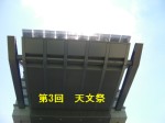 8月27日 西与賀町コミュニティーセンター(佐賀市天文台) 薄夏休み最後の公開日のせいか、空の状態は悪いのに家族連れがが多く(公式には28名としたが、30名以上だったかもしれない)てんてこ舞いでした。最初は雲が多く、初期設定すらままならなかったのですが、アルビレオをやっとiいれた頃にはドームいっぱいの人でした。雲の間から見える夏の大三角形とさそり座、北斗七星と春の大曲線、北極星を屋上で解説したころは、かなりの人が周囲を囲んでいて写真に撮れなかったことが残念でした。ドームと屋上に分かれてもらって観望しました。夏休みの宿題と質問を持ってきていた小学4年生が3人いたので、長淵さんが早い時間から質問に応え、近藤が夏の大三角形を対象にして、用意したて来た解説星図と写真を渡して、見た時刻(20時30分)と方位(東)と大体の高度(ほぼ天頂)を記した上で、星の並びを観察して明るい星を大きく暗い星を小さく記録していくよう教えました。 観望対象: 春の大曲線と北極星、夏の大曲線とさそり座、こと座(ベガ、β、ε、M57)ヘルクレス座(ラスアルゲティ、M13)、白鳥座(アルビレオ、γ)、いるか座γ、ミザール。 写真はありません 来訪者 28名+佐賀大医学部天文部部長 当番:近藤、永渕 報告:近藤 |