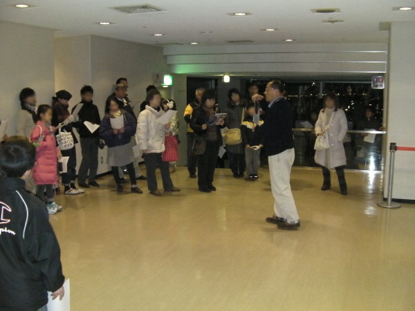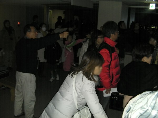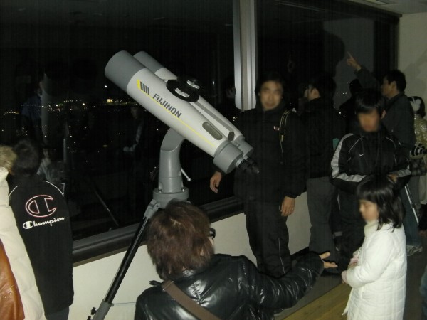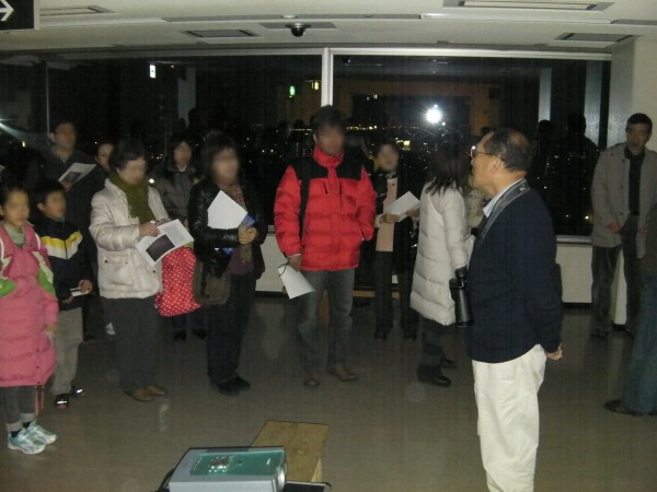 2月5日 冬の星空散歩(カノープスを見よう)(佐賀県庁展望ホール) 佐賀県立博物館主催で行われた観望会でした。事前申し込みで参加された30名は18時頃から博物館内で説明を受けた後、20時ころに県庁展望ホールに到着しました。副島さんが作成した資料とプロジェクター画像で本日の星空の説明やカノープスの話から始まり、20時半ごろから双眼鏡による観望が始まりました。特別に照明を消してもらいましたが展望ホールのガラス越しの条件と低高度の光害の影響もありなかなか見つけることができず、残念ながら21時頃に一旦解散になりました。西コミで鶴田会長がカノープスが見えたとの情報により、松林さんがフジノンの150mm双眼鏡で探索したところ21時20分頃カノープスを見つけることが出来ました。あきらめずに残っていた2人の参加者も見ることが出来て喜んでおられました。近藤さんの双眼鏡でも見ることができました。協会の用意した7×50の双眼鏡では発見することができず、フジノン150mmの威力を垣間見た観望会でした。県庁展望ホールは22時まで開いているので誰でも観望場所として使えますが、通常は照明が明るいので、かなり難しいかもしれません。夜景を見るには最高です。 参加者:30名 担当:副島、近藤、松林、岩本、白石、松尾 博物館:丹野、滑川、飛松、川副 県立博物館ホームページでの掲載記事へ⇒リンク 写真 1、2、3 、4、5 |