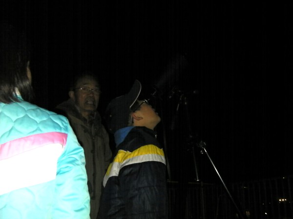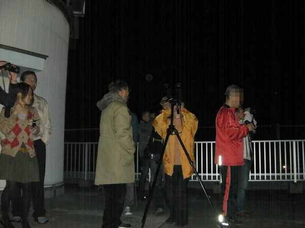 12月10日 西与賀町コミュニティーセンター(佐賀市天文台) 皆既月食観望会 定例の観望会と皆既月食観望会、さが科学少年団例会が同時開催でした。夕方から準備を始めましたが時より小雨も降る天気で月食の観望は難しい気がしました。副島さんだけは長年の経験で23時過ぎには雲が流れると楽観的な予想。お手伝いの会員と佐賀市の職員さんたちで観測機器の準備や受付の準備が整いましたが雲が多くてほとんど月が見えません。21j時頃から近藤会長による皆既月食の説明会が室内で有りました。来訪者はまだ10名ほどでした。その後、部分食が始まる頃からちらちら月が見え出して皆既になるまで観望が出来ました。来訪者は赤っぽい月の色が印象的だったようです。時間が長かったのと来訪者もぼちぼちだったのでデジカメで撮影して楽しんでおられました。木星の観望や星空解説か各会員によって行われていました。24時過ぎには厚い雲に覆われて撤収、て25時頃から小雨が降りました。あの天気では奇跡的な雲の状態で観望会を終わることが出来たと思います。NHK佐賀さんのニュース取材も有りました。 写真→スライドショー 来訪者:約60名 当番:副島、松尾 +近藤,園田,鶴田,松林,大田,前田,中村(美)、佐大生 写真&報告:松林、松尾 |