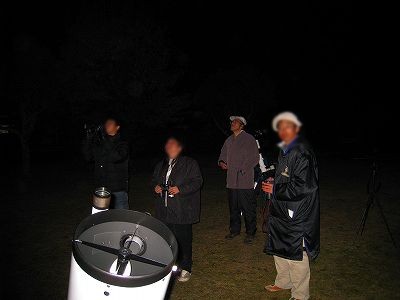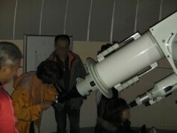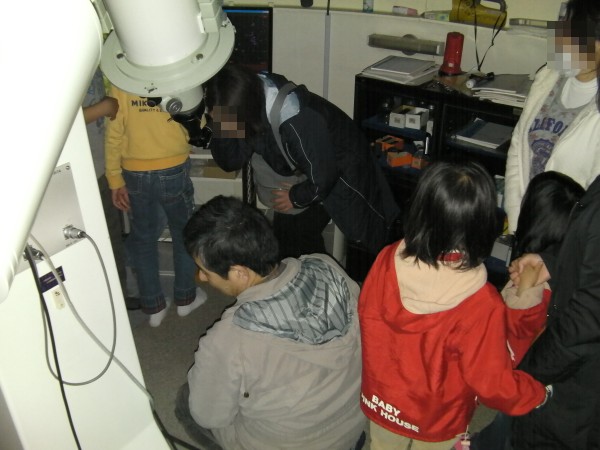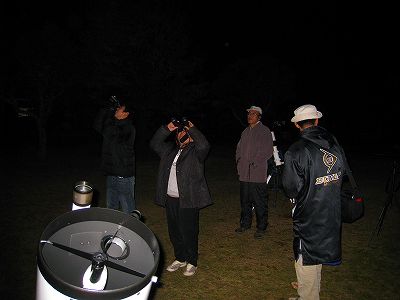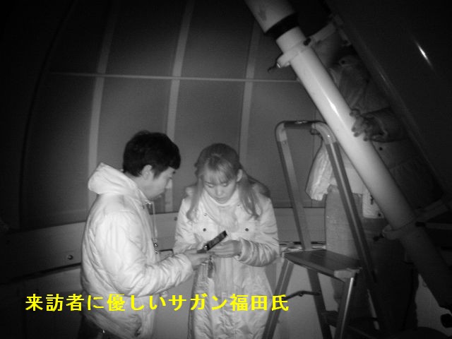 2月26日 西与賀町コミュニティーセンター(佐賀市天文台) 久々に観望会が実施できました。2月にしては暖かい日で、春霞のように透明度はあまり良くありませんでした。時々、薄雲がかかる時もありました。最初は西の空に見える木星を観測。双眼鏡でスバル、M42等を観察してもらいました。20cm屈折で、おおいぬ145、M42、M41、リゲル、シリウスを観望。見えないと思っていたカノープスを21頃に双眼鏡で発見。来訪者の皆さんに双眼鏡で観測してもらいました。 来訪者:20名 当番:近藤、永渕、 園田、松尾 + (佐賀大生 :大田ほか3名) 写真 1、2、3 |