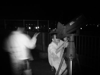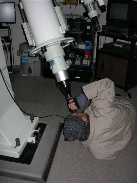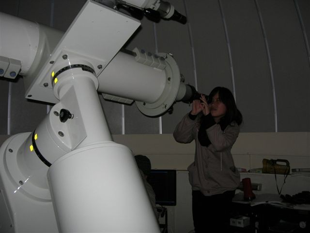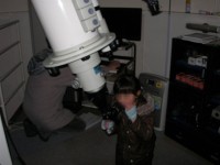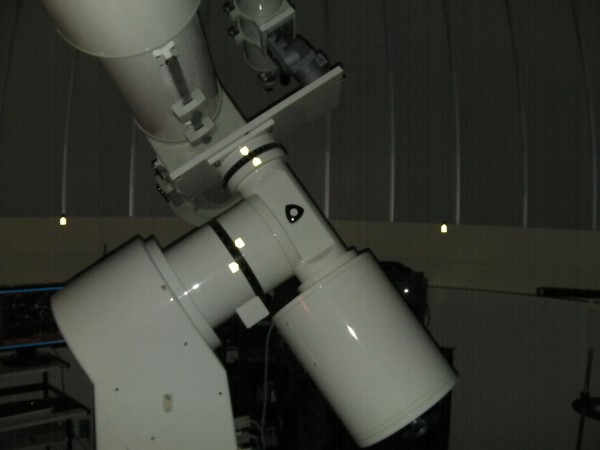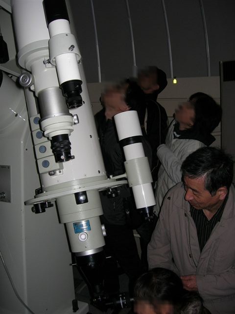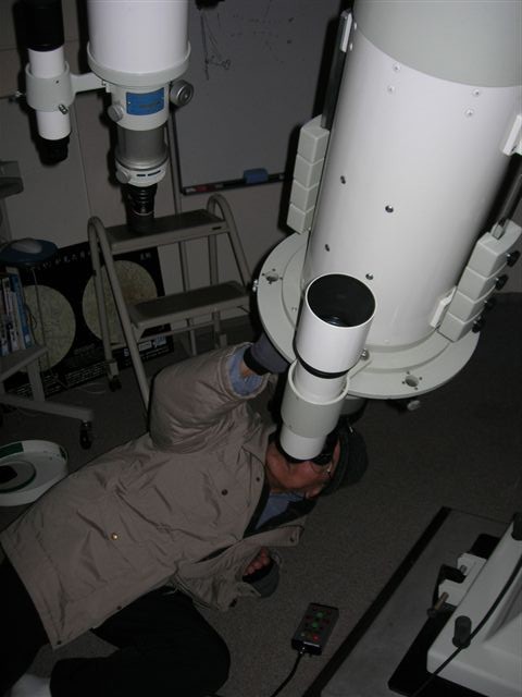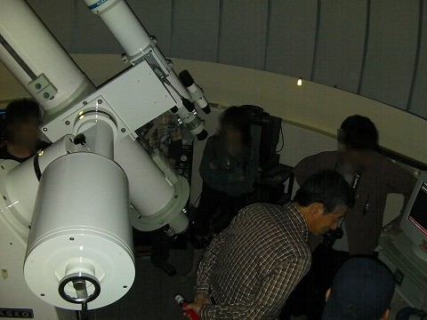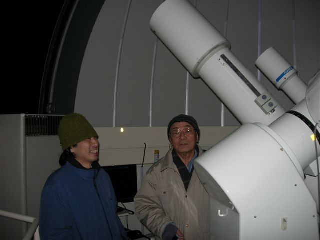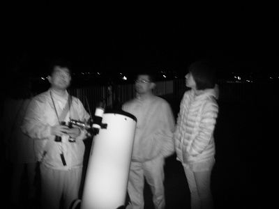 10月3日 西与賀町コミュニティーセンター(佐賀市天文台) 天候:晴れ 透明度:6/10 シーイング:6/10〜7/10 対象:月、木星、アルビレオ、いるか座γ、スバル,天王星、ガッサンディクレーター 月が出ていて明るかったので、観望対象は少なかった。天気が良かったので来訪者が多く2人体制ではMAXでした。園田氏が20cmを担当して月、木星ほかを導入。屋上広場で松尾が貸し出し双眼鏡とドブソを担当。小学生の来訪も多かったので双眼鏡を渡して自由に星を見てもらいました。 追加: 天王星 :約300倍で観望してもらう。青緑で小さな円盤状の天王星でしたがそれなりに納得してもらう。 ガッサンディクレーター :12.5cmは80倍で全体像を、当夜は割りとシーイングが安定していたので20cmでは思い切って400倍をかけたガッサンディクレーター見てもらった。 自動導入で望遠鏡との接続が切れる問題は、故障箇所が特定できて解決しました。元の制御パソコンで安定して動作することも確認しました。 写真→1、2、3 (写真は赤外線照射撮影のためモノクロです) 来訪者 50名(含子供10名) 当番:園田、松尾 報告:松尾、園田氏追加 |