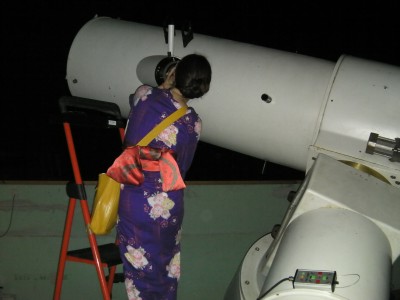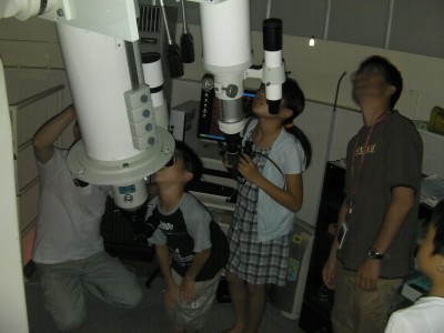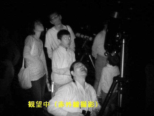 8月27日 太良旅館組合 20時15分頃、旅館客様が到着。すでに雲が湧き始めていましたが天頂及び西方が僅かに晴れいたので夏の大三角及び北斗七星をレーザーポインターを使って説明。ミザールは双眼鏡で確認してもらう。天の川はもちろん、いて座・さそり座は確認できぬまま雲が厚くなり、望遠鏡を使っての観望は断念。 後はスラディングルーフ内の60cmと15cm双眼鏡を見学してもらってお茶をにごしまた。 9時半頃、残念ながらお客は帰還の途へ。 当番組は後片付け後、10過ぎには撤収した訳ですが、お約束通り観望会終了時に晴れという状況でした。 写真はありません 参加者:旅館客 約14名(子供4名)福岡・北九州・下関・大牟田から 太良町観光課 家族御一行様 約12名(子供約5名) 、太良町の広報紙及びPRビデオ作成スタッフ2名、旅館組合2名 園田、中村(美)で対応。 報告:園田 |