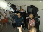 7月9日 西与賀町コミュニティーセンター(佐賀市天文台) 梅雨が明けてやっと観望会が久しぶりに開催できました。曇を通して辛うじて月が見える程度の天候で始まりました。市民の方も待ち望んであったのかこの天気にも関わらず、一時はドームが大変混み合い蒸し暑かったです。20cm屈折では主に月と土星を観望。屋上広場では25cmドブソを使って月、双眼鏡も数台貸し出して楽しんでもらいました。21時過ぎには天頂付近に雲の間からこと座が見えるようになりこと座W・Wスターなども見えました。観望対象は月、土星、アンタレス、WWスター、ベガ,。 来訪者 20名 当番:園田、松尾 写真 1、2、3 |