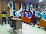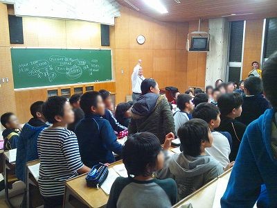 11月8日 田島小学校・ (北山少年自然の家) あいにくの曇りだったので、屋内で星空教室を行いました。11月9日に接近する小惑星の話題について触れたのち、隕鉄を実際に生徒さん達で触ってもらいました。その後、当日の星空をステラナビゲーターで案内しました。最期は、月と火星と2002年しし座流星群の写真争奪じゃんけんで大盛り上がりし終了しました。 写真 1、2 対象者:116名 担当:近藤、副島、大田 写真&報告:大田 |