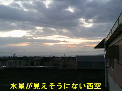 3月26日 西与賀町コミュニティーセンター(佐賀市天文台) 久々の好天で、早い時間には水星、カノープス、土星がそれぞれ西、南、東の低空に同じような高度で見ることができました。水星は、今年一番条件の良い3月23日の東方最大離角を過ぎたばかりで、10度近い高度で肉眼でも見えました。半月より少し細い状態でしたが、低くなるにつれてプリズム現象もあり七色のボケボケになり、浮き上がり現象で視野の中央からどんどん動いていきました。カノープスは、南中を過ぎており低くなるばかりで、シーズンも終わりです。 土星は早く上がって来るようになり、21時にはかなりな高度でこれからが観望シーズンです。輪が開いてきて土星らしい姿で皆喜んでくれましたが、カッシニの空隙は気流のせいで確認できませんでした。 観望対象:水星、土星、カノープス、M41、42、43、45、46,47、79二重星:カストル、リゲル、オリオンλ・θ、おおいぬ145、うみへびε 炭素星(赤い変光星):うさぎR(いつもより明るいが赤色がうすい)、オリオンw、うみへびV(すごく赤いが暗い)、うみへびU (ガーネット星と同じくらいのオレンジ色) 来訪者:21名 当番:長淵、松林、近藤 写真はありません |
