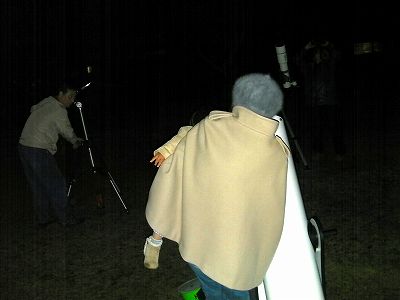 12月3日 西与賀町コミュニティーセンター(佐賀市天文台) 西コミの工事のため、前の芝生広場で実施。鶴田氏の自前屈折、近藤会長の大型双眼鏡と西コミの25cmドブソ、10cm屈折、双眼鏡を使用しました。外灯は消灯してもらっていたので観望可能でした。空の状態もまあまあで小径の望遠鏡でも木星の縞もよく見えました。思ったほど寒くなく、来訪者も少なかったのでゆっくりした観望会でした。 対象:月、木星、アンドロメダ、すばる、M42、ベテルギウス、アルビレオ 写真→1、2 来訪者 12名 当番:鶴田、小柳 +近藤、松尾 写真&報告:松尾 |