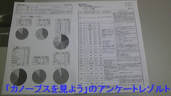 9月19日 老司中学校1年生(波戸岬少年自然の家) 台風で荒れ模様の天候だったので、屋内で実施。岩本さんがまず、流星や太陽、月などの模型を使って、流星、日食、UFOなどの話を生徒と対話をしながら楽しくやった。次いで近藤が、ステラナビで今日の星空を案内し、スライドショーで月、太陽(日食)、惑星、彗星、流星、オーロラ、天の川と夏の星座、星雲、星団、銀河を紹介した。草野さんの写真を多く使わせていただいたが、とても美しく皆に感動してもらった。星雲、星団は星の誕生、成長、死という流れで対象を選んだ。銀河は、M31を使ってわれわれの居る銀河の構造を説明し、天の川がなぜ見えるのかの話をして後、オーストラリアで写した全天カメラによる天の川の映像を見せることで、よくわかってもらえたと思う。 写真はありません 対象者:21+47名 担当:岩本、近藤 報告:近藤 |