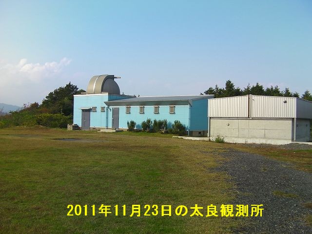 4月29日 春の太良観測所整備 たいへん良いお天気でウグイスの鳴く声が聞こえて新緑がきれいな太良観測所でした。 午前中から芝刈りや周辺の草刈りを行いました。伸びた草もまだ少なく良くはかどりました。一方、クズの根っこ取りが大変で根絶は難しいです。夏にあまり伸びないうちにに切るしかないようです。前回の周辺整備の時に切り倒した立木は焼却してきれいになりました。昼食は「給食おばさん」のカレーを頂きました。たくさんお代りをする会員(S.T氏)もいて好評でした。昼からも引き続き作業を行い17時頃には皆さんケガも無く終了しました。 望遠鏡は26cm反射用の自動導入ソフトのバージョンアップを行いましたが、モーターステップ角のパラメーター値を入力してないので、まだ正常動作しません。歯数を数えて正確な値を入力します。5月21日の総会の時には出来るとおもいます。「ろくまるくん」は格納庫内の簡単な掃除をしましたが、望遠鏡自体の本格的な整備は未だです。これも21日総会後に行う事が出来ればと思います。これからも夏の観望会や観測会に向けての望遠鏡設備の整備がもう少し必要です。 参加者:鶴田会長、近藤、園田、白石、吉田、藤原、副島、土井、松尾 ビデオ→ |