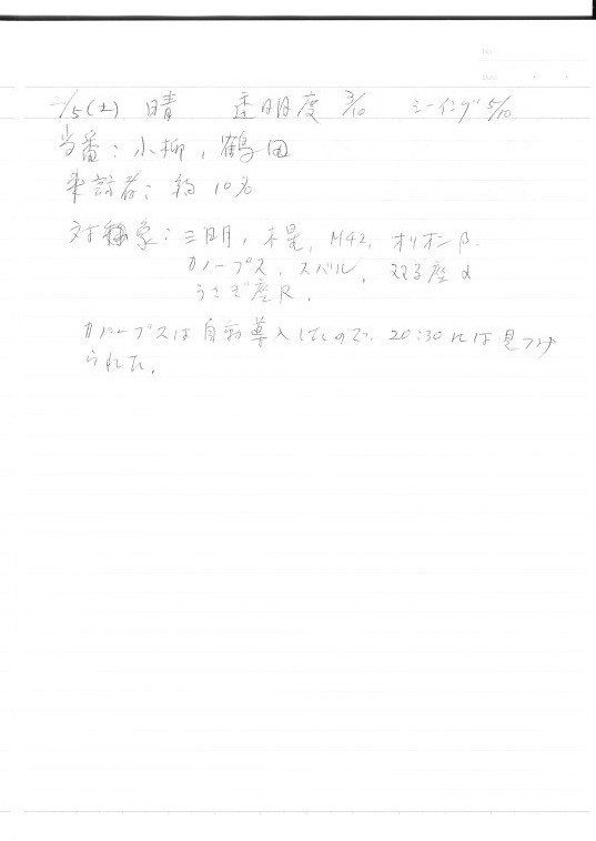5日(土) | 天体観望会(一般向け) | 佐賀市西与賀コミュニティーセンター | 第1週 記録ノート画像 | 終了 | 鶴田,小柳 |
