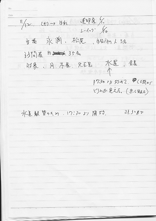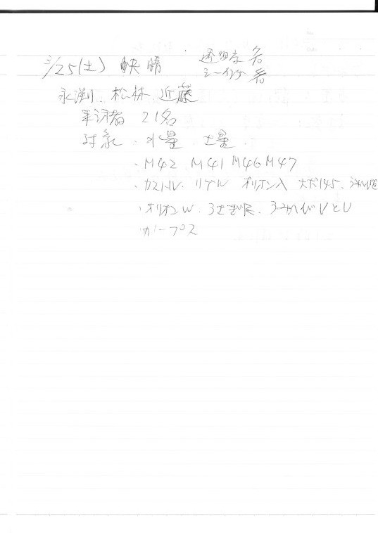 | 年月 | 日(曜日) | 内容 | 場所 | 備考 | 結果 | 担当者/参加者 |