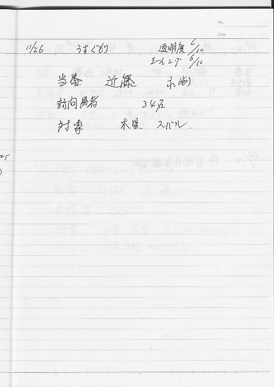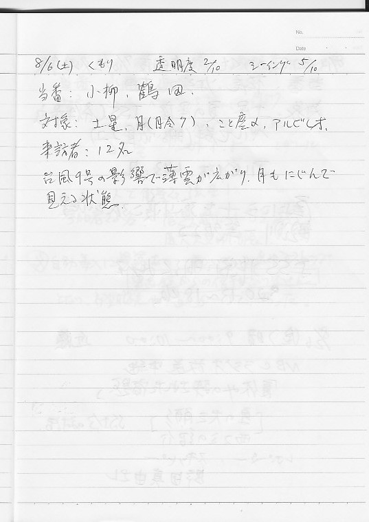 | 天体観望会(一般向け) | 佐賀市西与賀コミュニティーセンター | 第4週 記録ノート画像 | 終了 | 近藤、永渕 | ||