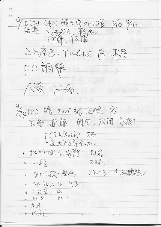 | 14日(金) | 10月 例会 | 佐賀天文協会事務局内 | 終了 | 近藤、永渕、鶴田、園田、松林、大田、福田、副島、松尾 | ||