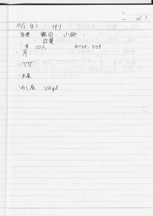 | 2011年10月 | 1日(土) | 天体観望会(一般向け) | 佐賀市西与賀コミュニティーセンター | 第1週 記録ノート画像 | 終了 | 鶴田,小柳 |