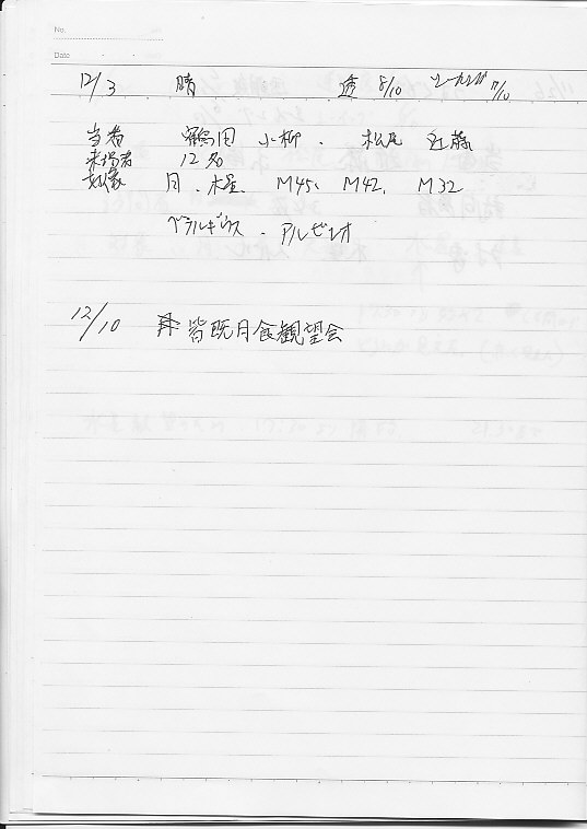 | 9日(金) | 12月 例会 | 佐賀天文協会事務局内 | 終了 | 近藤、永渕、鶴田、園田、松林、大田、土井、副島、松尾 | ||