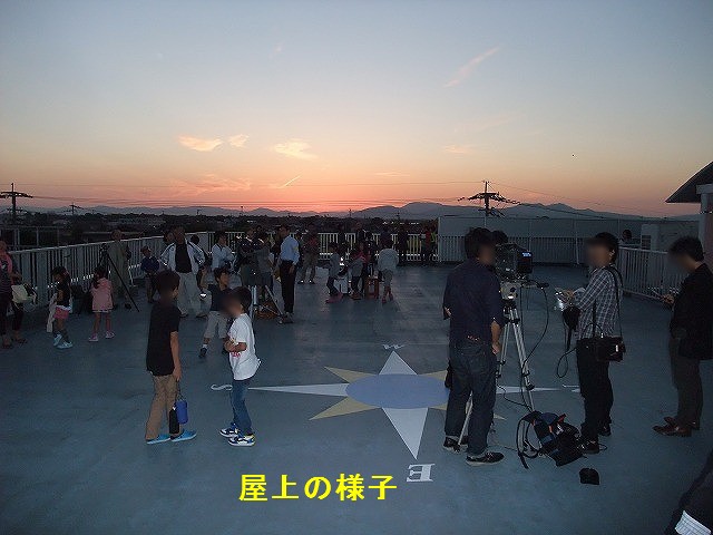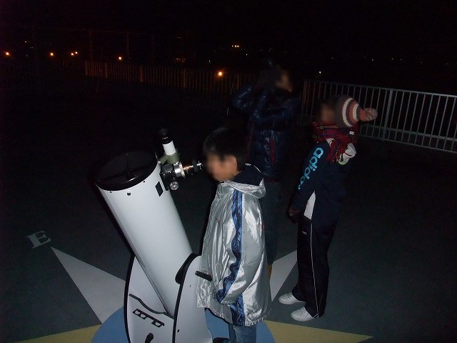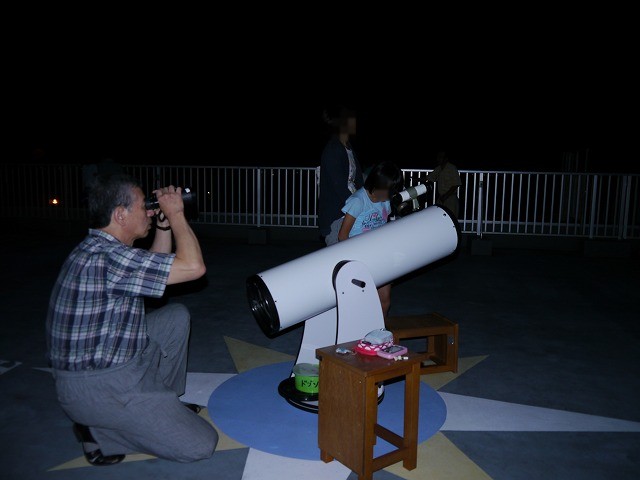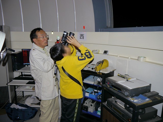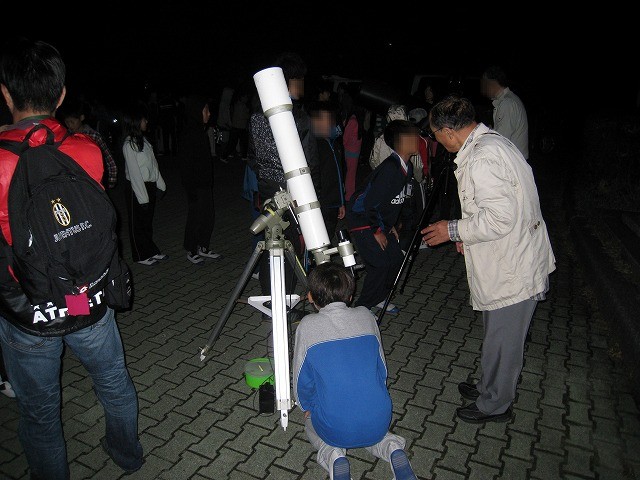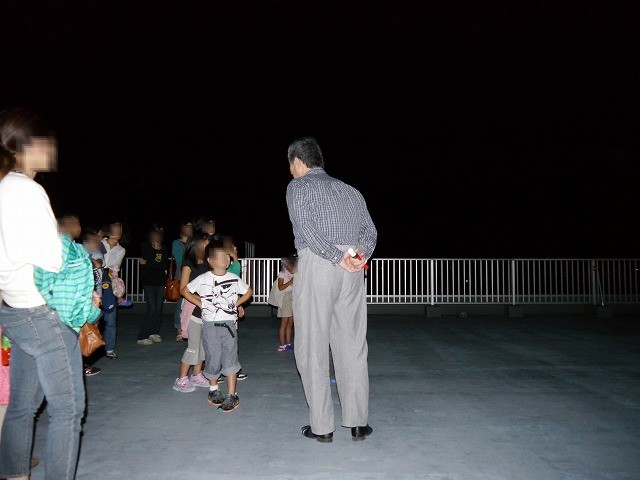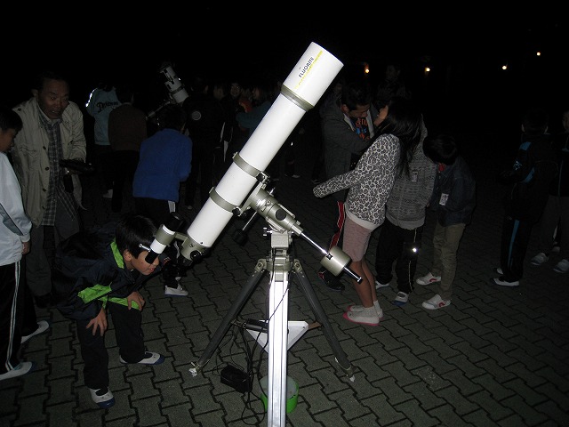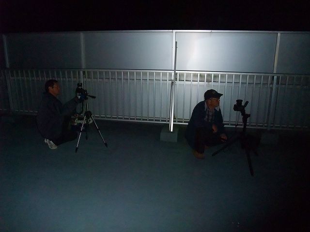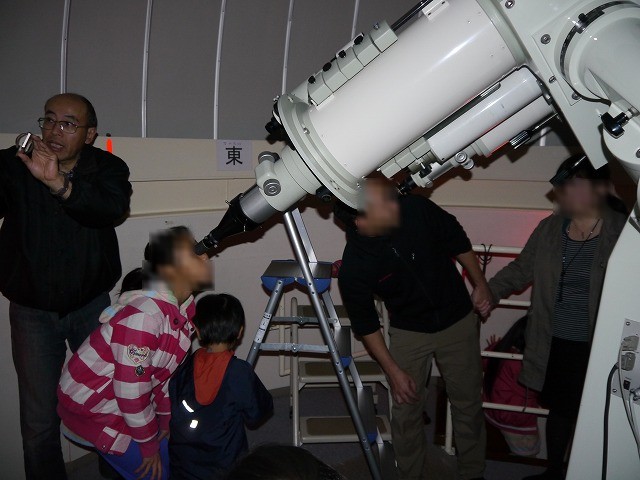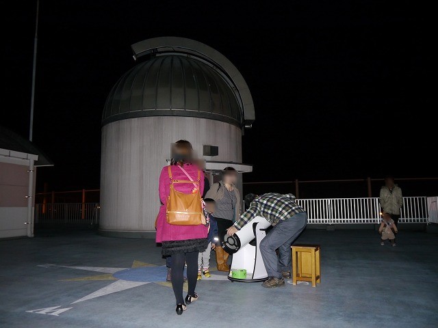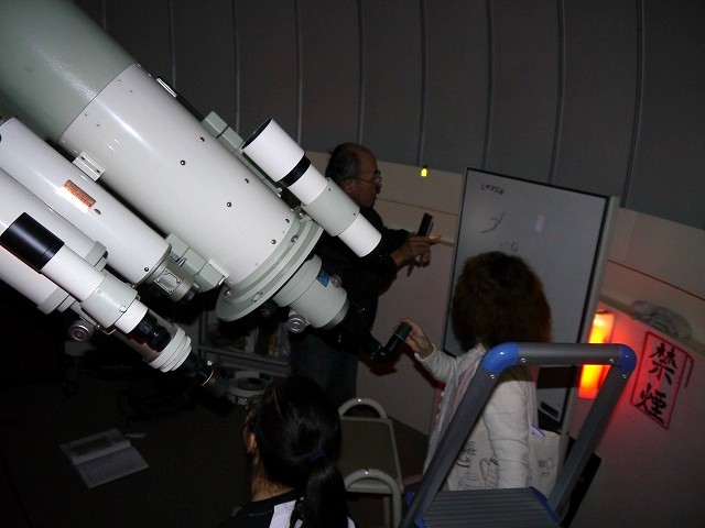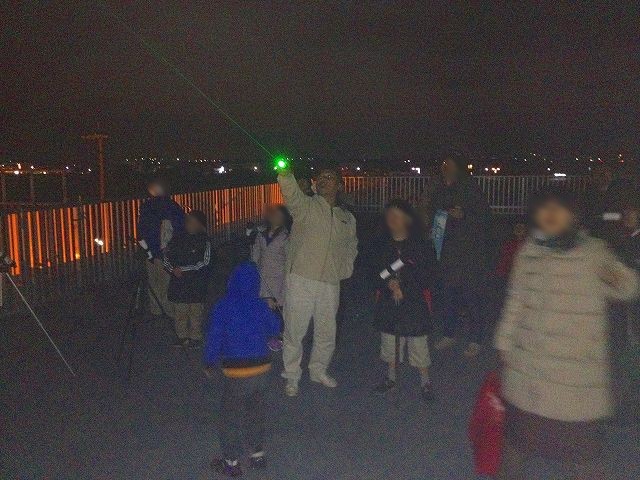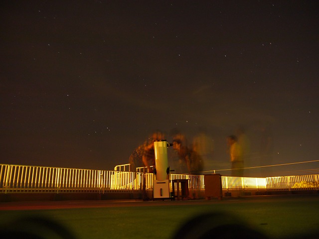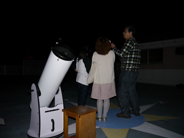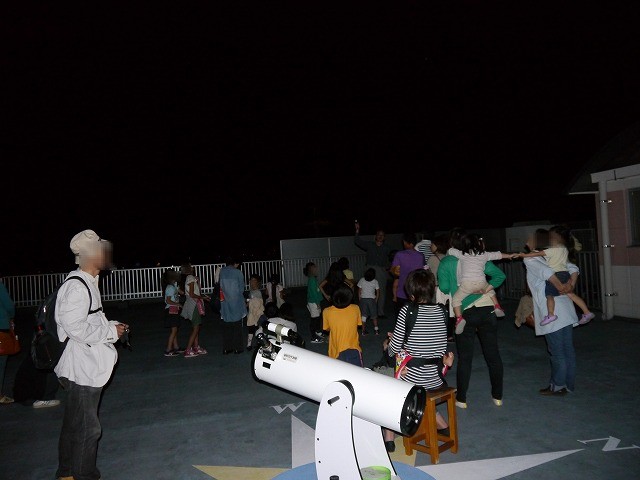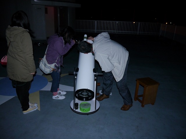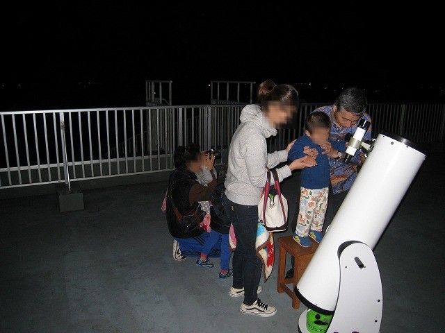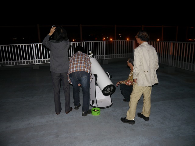 10月18日 西与賀コミュニティーセンター(佐賀市天文台) 小さな子どもが多かったのですが、天王星を望遠鏡で見たいということで訪れた家族や熱心に望遠鏡をのぞく子どももいて、比較的にぎやかな観望会でした。 低空はかすんだような空でしたが、天頂付近では天の川が何とか確認でき、屋上広場では、双眼鏡ではくちょう座付近の天の川を楽しんでもらいました。 また、オリオン座流星群と思われる流れ星が2個確認でき、もう一度流れ星を見たいと言って、長い間星空を見上げていた来訪者もいました。 観望対象:天王星、アルビレオ、M11、M15、M31、M57、二重星団、すばる(M45)、 アンドロメダ座γ、いるか座γ、天の川 来訪者:15人(うち子ども8人) 担当:内川、園田、松林、近藤 写真 1、2、3 |