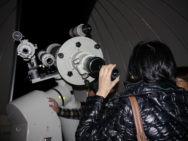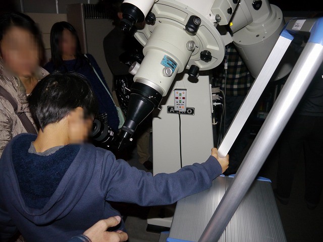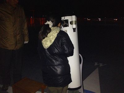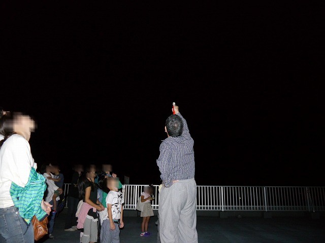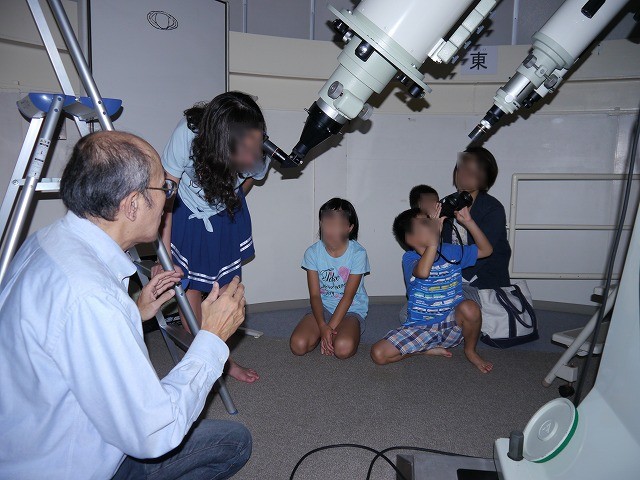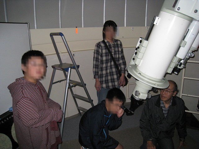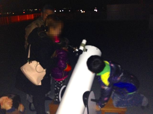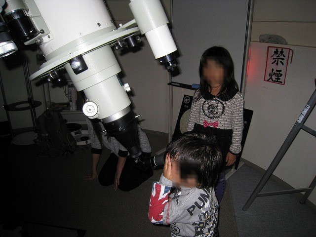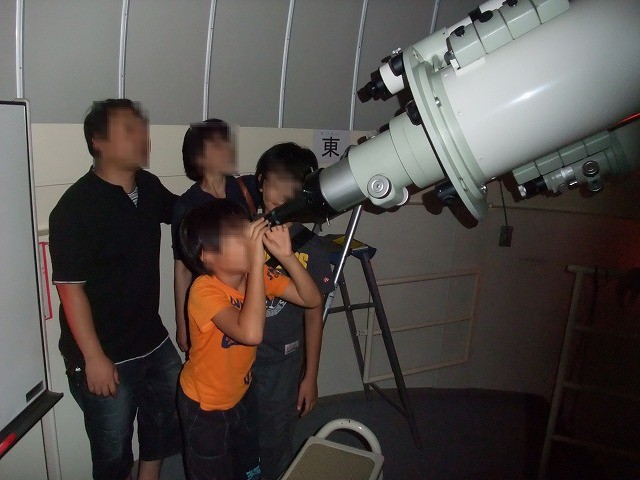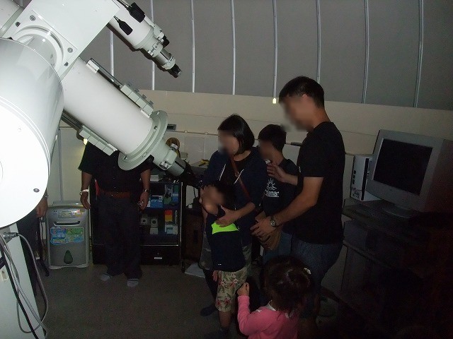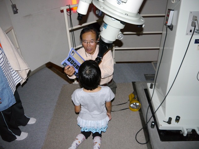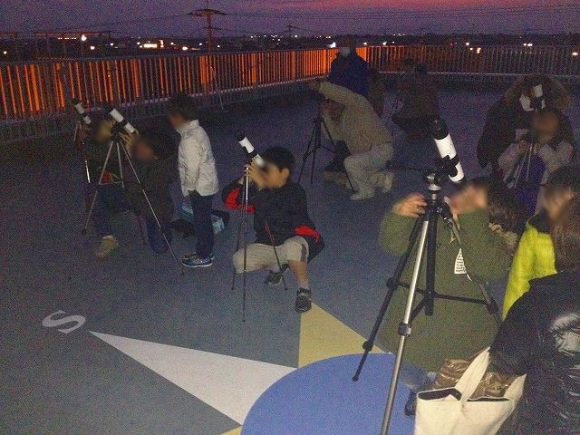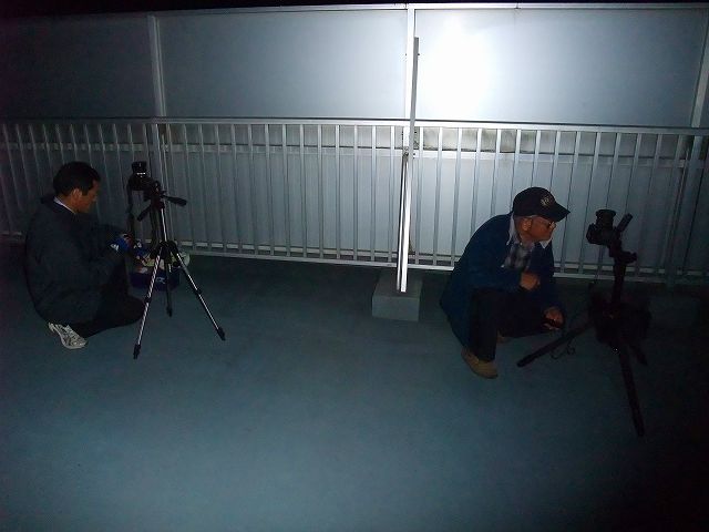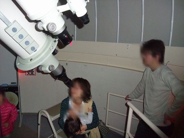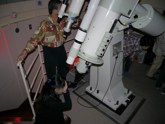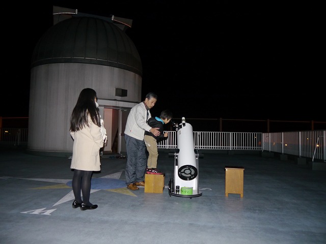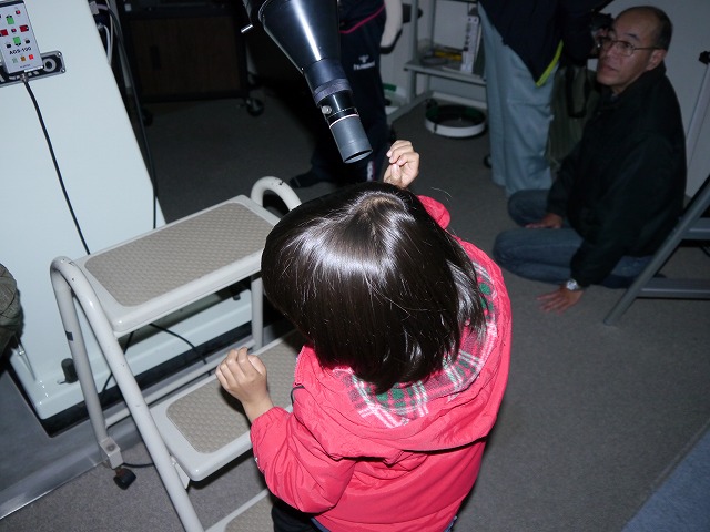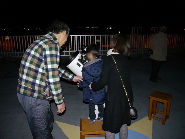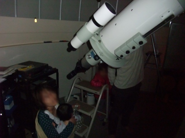 10月18日 西与賀コミュニティーセンター(佐賀市天文台) 小さな子どもが多かったのですが、天王星を望遠鏡で見たいということで訪れた家族や熱心に望遠鏡をのぞく子どももいて、比較的にぎやかな観望会でした。 低空はかすんだような空でしたが、天頂付近では天の川が何とか確認でき、屋上広場では、双眼鏡ではくちょう座付近の天の川を楽しんでもらいました。 また、オリオン座流星群と思われる流れ星が2個確認でき、もう一度流れ星を見たいと言って、長い間星空を見上げていた来訪者もいました。 観望対象:天王星、アルビレオ、M11、M15、M31、M57、二重星団、すばる(M45)、 アンドロメダ座γ、いるか座γ、天の川 来訪者:15人(うち子ども8人) 担当:内川、園田、松林、近藤 写真 1、2、3 |
