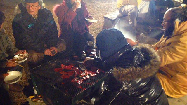 1月12日 「2014年 新年会」(太良観測所) 恒例の新年会です。15時頃、太良観測所には早めに到着された近藤会長が観測所内を掃除中でした。その後、ちらほら会員さんが到着。慣れた手順で準備が進みました。報告者は食材の調達や不足品を太良町まで下山しての買い出し、給食おばさんはトン汁や新アイテムの準備。佐賀大の吉富会員も皆さんのお手伝いでがんばりました。吉富会員は中高年者の多かった参加者中では一番若く飲食も旺盛で食材も残らず助かりました。暗くなった18時過ぎに近藤会長頭の年頭あいさつで始まりました。用意された佐賀和牛や有明産カキの豪華食材が焼かれて食されました。鶴田会員提供の「ぜんざい」やトン汁などを食べるとお腹いっぱいです。だんだん観測所内へ避難する会員も多くなったので、おもむろにサザビーズ副島氏によるオークションが始まりました。この後の事はビデオにてお楽しみください。 参加者:17名 会計明細→PDF 写真 1、2、3 、4、5、6 |