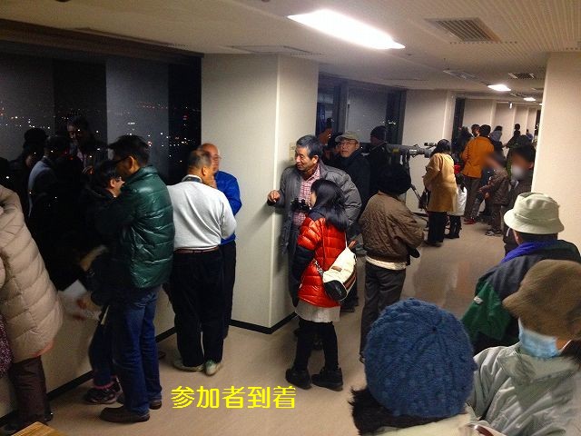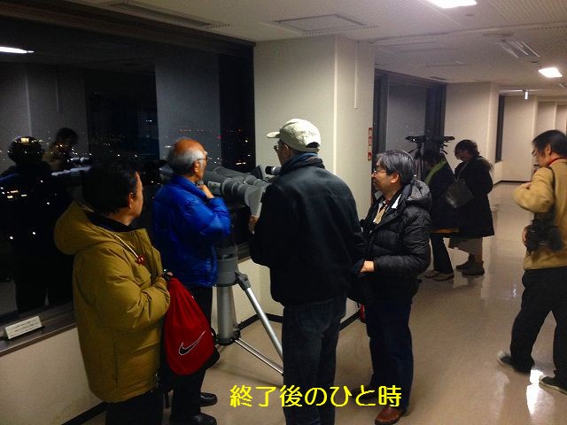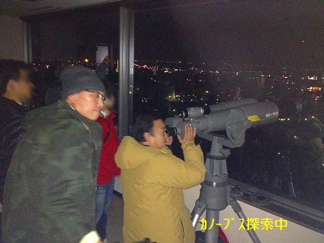 2月22日 冬の星空散歩&カノープス観察会(佐賀県庁展望ホール)4回目 今年で4回目の恒例になった県博主催のカノープス観察会です。夕方から低い空には雲が多く20時頃に県庁本館展望ホールでのカノープス観望会が始まった時には全く見えない状態でした。過去3回はすべてカノープスが見えたのですが今年は無理かもと思いながらも必死に双眼鏡でカノープスを探しました。星の話をしながら、なんとな見る佐賀市内の夜景も意外ときれいです。この観察会の間は通路の照明を消していたのでよけによく見えたのかもしれません。なかなかカノープスを見つけることが出来ないところに、西コミ観望会の当番である松林会員から7×50の双眼鏡で見えているとの連絡が入りました。こちらでも再探索を始めましたが各自の双眼鏡では見つけることができない中、頼みのFUJINON40×150大型項眼鏡でついにカノープスを捉えることが出来ました。参加された方には交代で見ていただきました。今年も見えて本当に良かったです。喜んでもらえたようです。参加者の中には昨年も来られたリピータも居られて県民の皆様にもある程度浸透しているのかもしれません。とにかくFUJINON大型双眼鏡の威力には助かります。会員自前の10cmクラスの双眼鏡ではカノープスは見えませんでした。 カノープス観察会の参加者:約90名 参加者:近藤、副島、椛島、松本、古川、大石、園田、市川、土井、松尾 写真・報告:松尾 写真 1、2、3、4、5、6、7 |