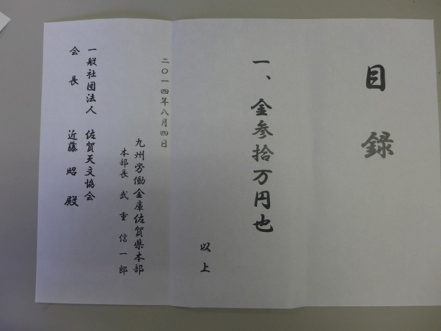 8月8日 8月例会(協会事務所にて) ・九州ろうきん「NPO助成」の報告 ・太良観測所整備の進捗と今後の予定について ・観望会、イベント日程 ・会長連絡 出席者;近藤、鶴田、永渕、園田、松林、大石、松尾 7名 写真 1、2、3 、4 、5、6、7 |