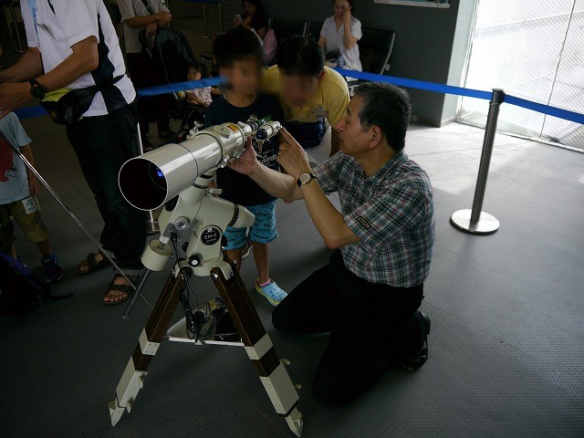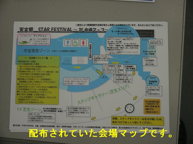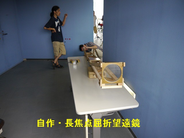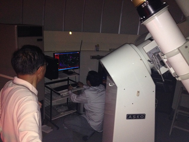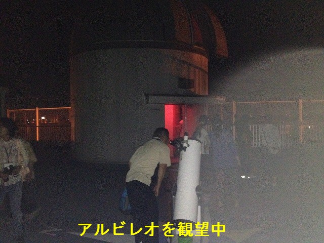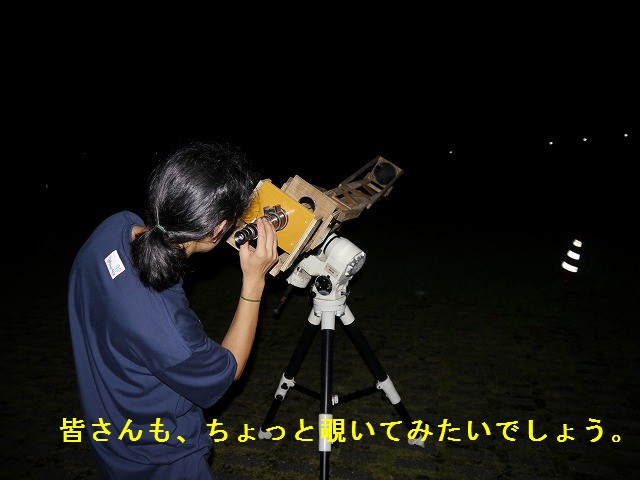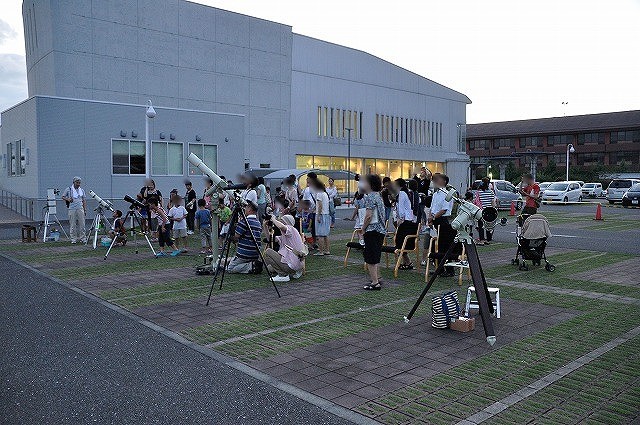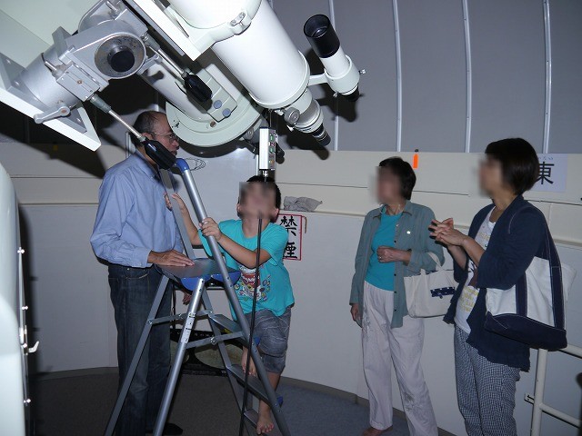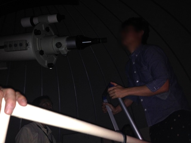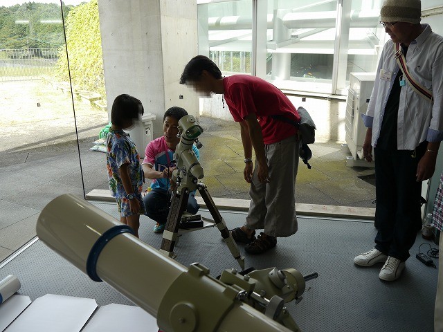 8月23日 天文祭2014(佐賀県立宇宙科学館) 今年で5回目になる天文祭です。報告者が着いた時には既に「望遠鏡の使い方講座」と「望遠鏡の分解組立体験」が始まっていてました。使い方が分からないため持ち込まれた望遠鏡はファイインダー調整方法を教えて携帯基地局のアンテナをターゲットにして導入できるように説明が行われていました。望遠鏡の分解・組立体験は仕組みを説明しながら行われるので理解が深まるのと、組立完了時に遠くの風景が望遠鏡で見えた時の感動があり楽しそうでした。説明する担当の皆さんは小さい子供さんが多かったのでゆっくりした言葉でていねいな説明をされたました。磁器鏡望遠鏡の世界的な権威であるスターダスト古川氏が何やら新しい望遠鏡を製作中とのことで見せてもらいました。なんと長焦点屈折望遠鏡でした。対物凸レンズ磨きから始めて木骨フレームで仕上げた力作でした。まだ調整中で見え味は評価できませんが、確かに望遠鏡として機能していますので今後の進化が期待できます。天文祭特別企画のプラネタリウムもみました。プロの天文学者さんと宇宙科学館の解説員さんとの掛け合いで、お客さんとはクイズでの絡みも交えて進行しました。内容は土星以外の星にも円盤があることや、天文学者さんが研究されている天体写真で円盤の中で星が誕生する過程の説明がありました。少し専門的な所もありましたが天文学者さんの説明のため聞いていても安心感がり、ある種の睡眠導入効果があることも発見でした。双眼鏡を持って入ったのでプラネで投影される星空を眺めてみました。感覚ですが10等星くらいの星も投影されているように見えました。星のまたたきは1等星ぐらいのいくつかの星を光量を短時間に変化させているようです。プラネの星は双眼鏡で見ると明るい星は面積があり大きく見える事がわかりました。19:30頃から芝生エリアでは近隣のアマチュア天文家がいろいろな望遠鏡や双眼鏡を出して観望会が始まりました。期待の土星は周辺に雲がかかっていてよく見えなかったは残念でした。ちょうどISSが上空を通る予測だったのでみんなが見守っている中、金星ぐらいに輝いて現れました。一般の参加者も多かったので初めて見た人も多く喜んでおられました。その後も雲が多かったので予定より早く21:30頃、撤収になりました。久々に会う天文仲間も多く来られていて、この天文祭が近隣のアマチュア天文家の集まる催しとして定着したようです。これからも永く続いて、もっと多くの仲間が集まる天文祭になる事でしょう。 担当者:市川、副島、近藤、松林、古川、福田、永渕 報告・写真:松尾 写真 1、2、3 、4 、5、6、7、8、9 、10、11、12、13、14、15 |