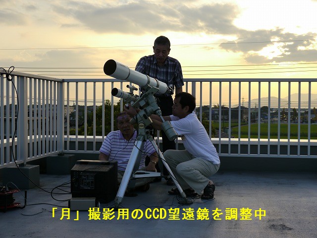 9月7日 「中秋の名月観望会」西与賀コミュニティーセンター(佐賀市天文台) 17j時位から準備にかかりました。小型望遠鏡にCCDカメラをセットしてリアルな画像を説明会場のプロジェクターで投影しました。屋上広場での機材は大型双眼鏡と25cmドブソを出しました。ドーム内の20cm屈折は主に土星用にしました。19時から1階のホールで副島氏が「月」についての事前説明を行いました。最初は月に雲がかかっていましたが説明会が終わってお客様が屋上に上がって来られた頃にはきれいな月が見れました。各会員が機材の操作と説明を行いすべての方に「月」や「土星」を観望してもらいました。並行して2階の踊り場では抹茶とお菓子のおもてなしとクラリネットやフルート演奏が行われました。お客さんが多かったので一時的に混んでしまいましたたが十分「明月観望会」として楽しまれたようです。STS,さんとNHKさんが取材に来れてましたので放送された所だけ見れるようにしました。一般のお客様が帰られたあと、本協会員にも抹茶とお菓子のおもてなしがあり、おいしく頂きました。21時過ぎにすべて撤収しましたが、結構みなさんお疲れのようでした。 観望対象:月、土星 参加者:66名 佐賀市スタッフ:4名 担当者:近藤、副島、松林、永渕、松本、松尾 報告・写真:松尾 写真 1、2、*、4、5、6、7、8、9、10、11、12、13、14、15 |