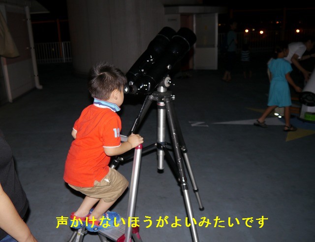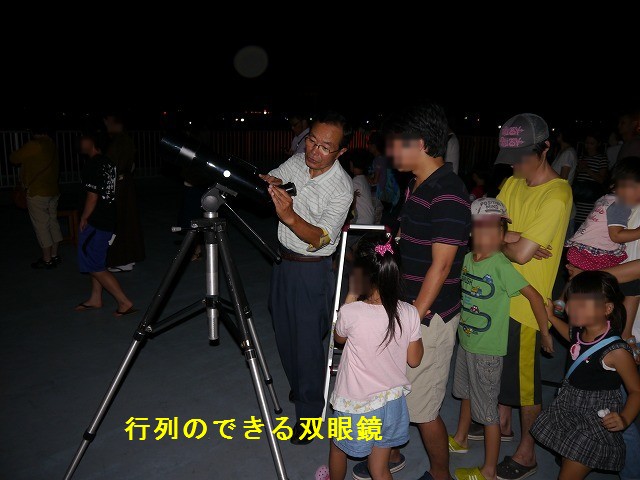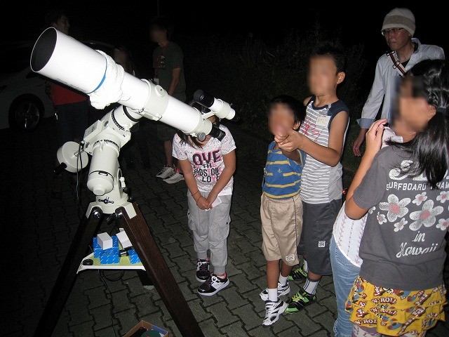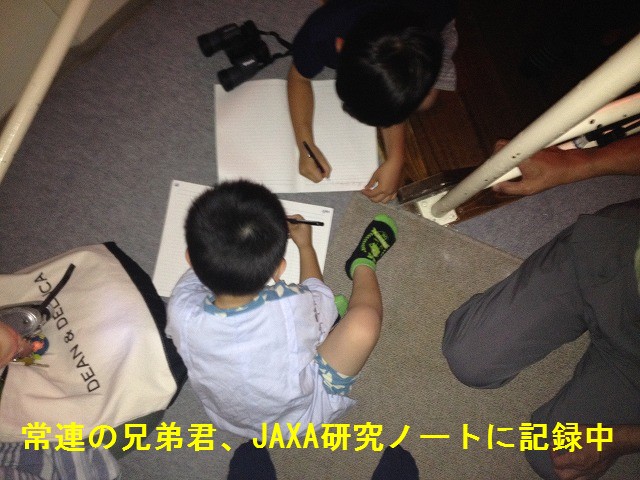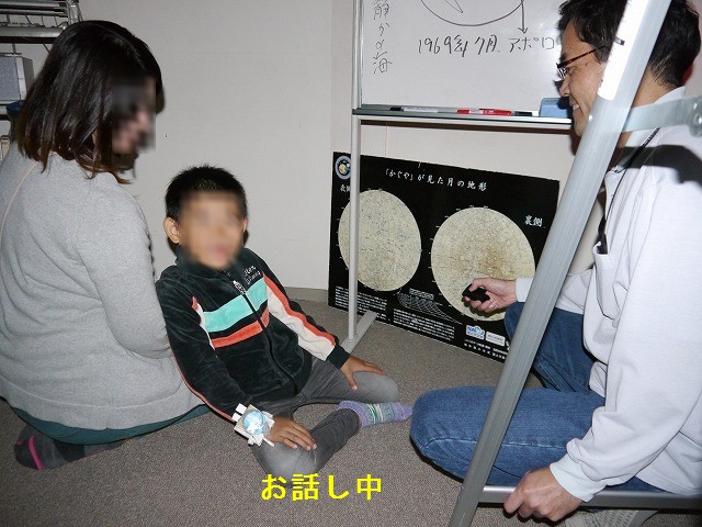 9月6日 西与賀コミュニティーセンター(佐賀市天文台) 月が見えただけでしたが、10人のお客さんが来ました。常連の子供は、福岡の大学に若田さんの講演を聞きに 行き、一番前で聞いて、一番に手をあげて質問し、握手をしたそうです。 (宇宙船に中はどのような音がしてますか?→いろいろな機械の音がしています。眠る時は耳栓をします。 中が汗臭くなりませんか?→空気清浄器で臭いは除去しています。)パンフレットをおみやげにくれました。 もう一人の宇宙好きのメガネの小学生は、昼に県立美術館で行われた、JAXAの若田さんの上司・〇〇さんの講演を聞いてきたそうです。 観望対象:月 来訪者:10名(うち子供5名) 担当者;鶴田、小柳/近藤、松本 報告・写真:近藤、小柳 写真 1、2、3、4 |