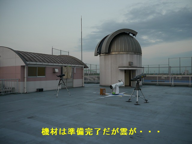 5月24日 西与賀コミュニティーセンター(佐賀市天文台) 昼間のH2Aロケット24号機の打ち上げは佐賀市内からではうす雲のため観測できず、また、きりん座流星群の出現予想もありましたが雲のため観測できませんでした。夕方も雲が多く観望会には難しい空模様でした。観望会開始の頃はうす雲を通して木星、火星、アークトゥルスの3個が肉眼で見えるだけでした。20cm屈折では数種の2重星を見ることができました。来訪者もなく、あまり見える星もなかったのですが定刻まで続けました。最後あたりになると、さらに雲が広がってきました。ドーム内の温度は24度もありました。 観望対象:木星、火星、カストル、かにι、ししγ、おとめγ 来訪者:0名 担当者;近藤、永渕 報告・写真:松尾 写真 1、2 |