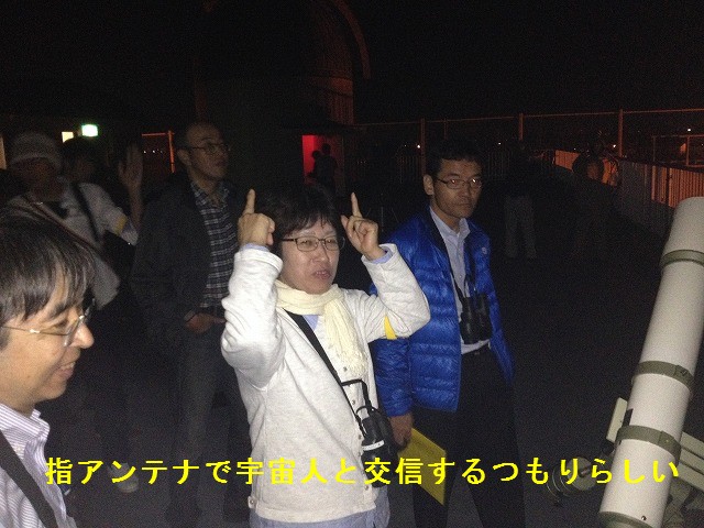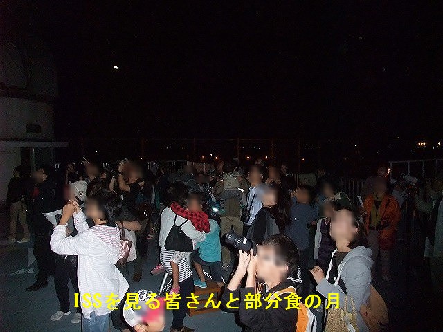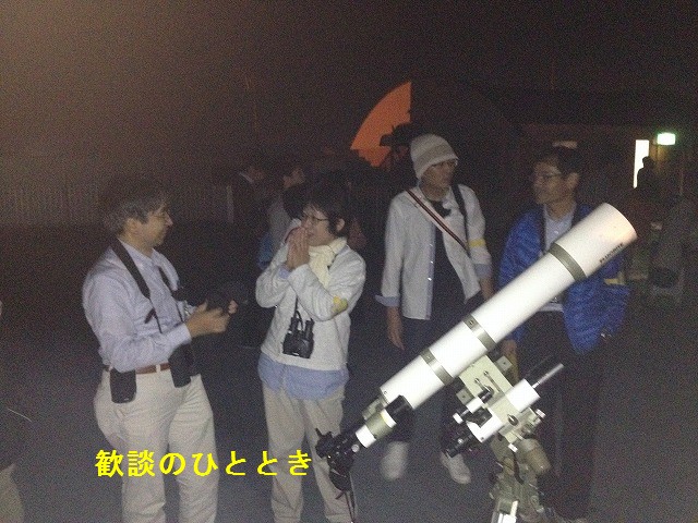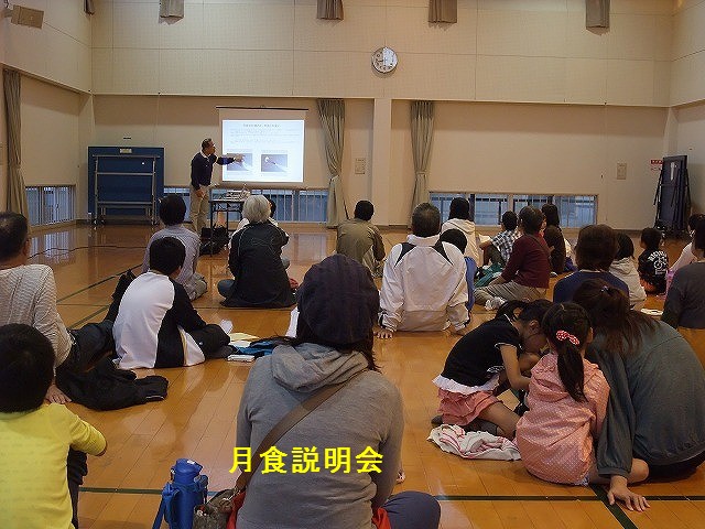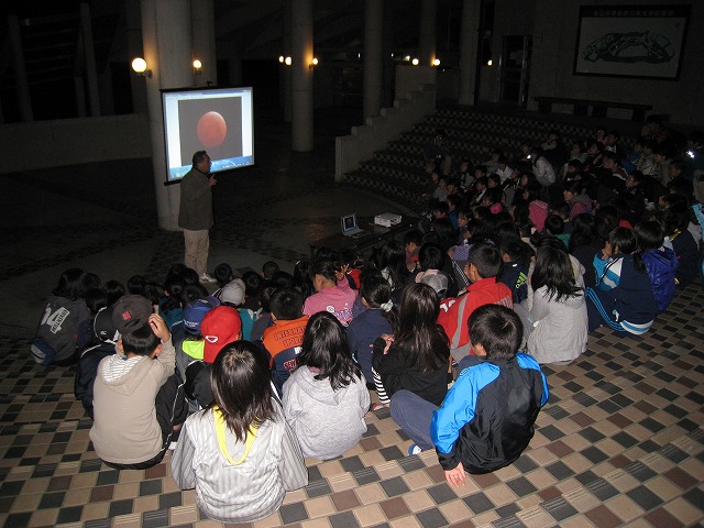 10月8日 西与賀コミュニティーセンター(佐賀市天文台) 「皆既月食 特別観望会」 17:30からの説明会では副島さんが、月食のしくみや見え方、見るポイントなどを資料と映像で話をしました。スクリーンには、リアルタイムの月の映像も映し出されました。 18:25分ごろNHKがニュース番組で2分間の中継をし、20:45からのローカルニュースでも流れたらしいです。私の担当したドブソでは、月の欠けた状態や皆既中の月の色がきれいという人が多かったです。皆既中は、土星やアルビレオやアンドロメダγなどをみてもらいました。アルビレオは宮沢賢治がトパーズとサファイアと呼んだ連星が天の川の微光星達の中に見えるのに驚いて喜ぶ人が多くいました。 ドームの中では、早い時間には土星を見てもらい、その後は月のほかに天王星やくじら座ミラなどをみてもらったようです。 観望対象:月 来訪者:約300名 担当者;近藤、永渕、副島、鶴田、園田、松林、松本、市川、大石、土井、松尾 報告:近藤 写真:松尾、近藤 写真 1、2、3、4、5、6、7、8、Moon k1、k2、k3、 k4、k5 |