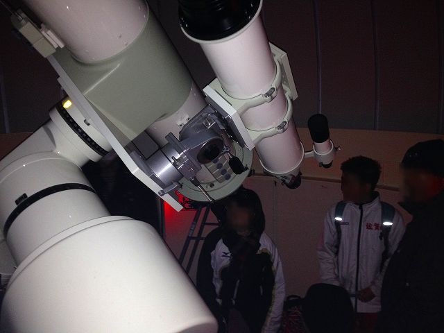 11月22日 西与賀コミュニティーセンター(佐賀市天文台) 昼は小春日和で、この時期にしては暖かい観望会でした。月や雲が無かった割に始まりの頃は透明度が悪い状況。20cm屈折では西の空から見てもらいました。最初から来れれた人たちが意外と早く帰られてしまい、今から空の状況も良くなるのに、と思いながらも目立った観望対象も無かったので引きとめる訳にもいかない状況。ほどなく次の親連れが数組ぱらぱらと来れて、屋上広場を通り走りまわる子供さんの歓声が聞こえて、なんとなく平和な気持ちに。21時すぎには透明度が上がり、これからという時に終了時間が来てしまい、急いで撤収。観望会終了時のドーム内温度は16度。SQM測定値は19.18でした。 観望対象:アルビレオ、M57、M31、M45、はくちょう座γ、ミラ、アンドロメダγ、イルカ、γ、カシオペア座γ 来訪者:20名(うち子ども10名) 担当:近藤、園田/松尾 報告・写真:松尾 写真 1、2、3、4、5 |