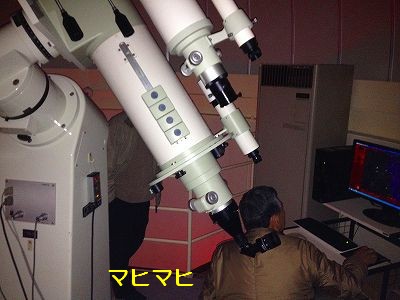 4月5日 西与賀コミュニティーセンター(佐賀市天文台) 18時過ぎまで雨模様なので一度は中止としたのですが、19時過ぎから急速に晴れてきたので慌てて駆けつけて開始しました。シーイングは悪いものの透明度は良く、月、木星、火星などを見ました。14日の中接近をひかえた火星は、黒い大シルチスと白い極冠が良く見えました。来客がないのでややマニアックに春の二重星、連星や赤い変光星などを観察しつつ、画面上に表記・登録する作業をしました。まだ一部ですが、今後の観望会で見ものを楽に導入できます。 観望対象:月、木星、火星、M67,二重星(かに座ι、カストル、しし座γ、おとめざγほか)、変光星 (かに座X、うみへび座V)、M104など 来訪者:0名 担当者;鶴田、小柳/近藤 報告・写真:近藤 写真 1 |