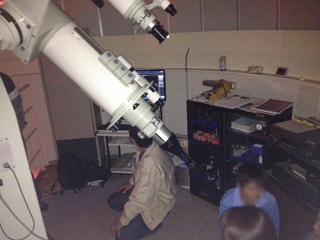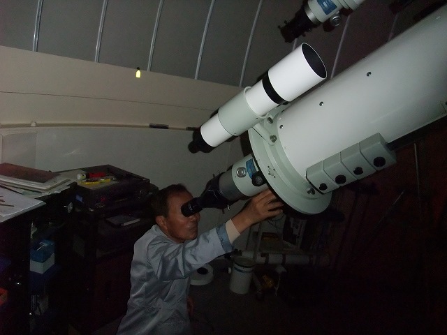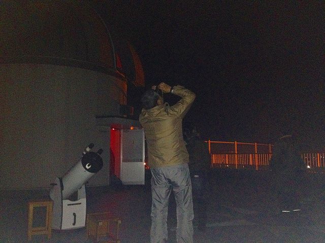 10月25日 西与賀コミュニティーセンター(佐賀市天文台) 理事会が終わったのが18時過ぎだったので、担当の会長、副会長はほとんど間もなく観望会開催だったと思います。月もなく快晴でしたが、県営球場のナイター設備が使われていたためか、全体的に空が明るく肉眼で3等星が確認できるくらいの状態でした。来訪者が少なかったので、ほとんど20cm屈折を使っての観望でした。来訪者にはゆっくり観望されたました。望遠鏡をのぞいたときに「きれい」と言われた事がありましたが、担当者には、ちょっと嬉しい瞬間だったと思います。星をみて素直に「きれい」と言った人は、その瞬間に星の世界へ引きこまれています。たぶん、また来られるのではないでしょうか。21時過ぎには少し空が暗くなったので会長がドブソを出して短時間でしたがスバルや星空説明をされてました。この時期としては比較的暖かく終了時のドーム内温度は21度。SQM測定値は19.05でした。 観望対象:M57、M31、M45、アルビレオ、二重星団、こと座ε、おひつじ座γ、ミラ 来訪者:6名(うち子ども2名) 担当:近藤、永渕/園田、松尾 報告・写真:松尾 写真 1、2、3、4、5 |