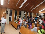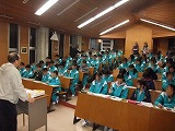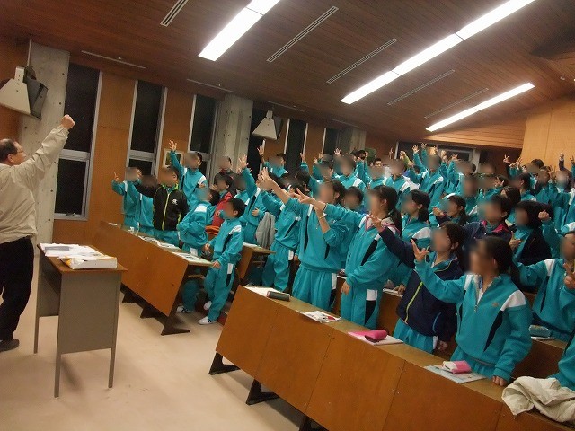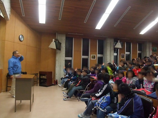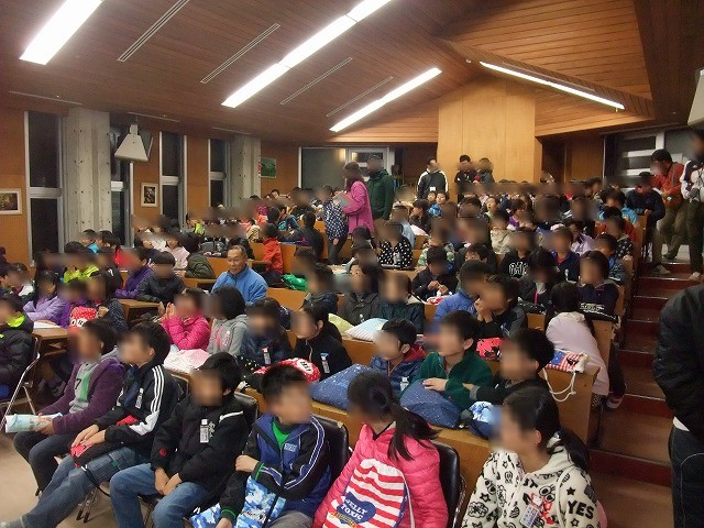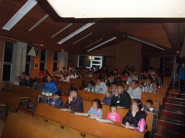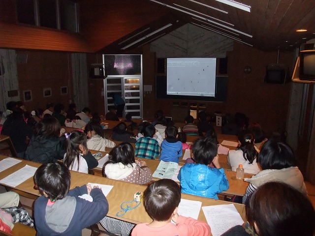 11月8日「わくわくチャレンジin北山」 北山少年自然の家 雨のため、研修室でステナビでの解説、天文クイズ、きらきら星の合唱等を行いました。 参加者は親子90名ぐらいですが、子どもは幼稚園園児から小学生低学年が中心でした。 室内での話ばかりで、小さい子どもたちには少し退屈(集中が長続きしない)ところもありましたが、 18:30~20:30の星空教室は無事終了できました。 参加者 約90名 担当:近藤、小柳、松林 報告:小柳 写真:近藤 写真 1、2 |