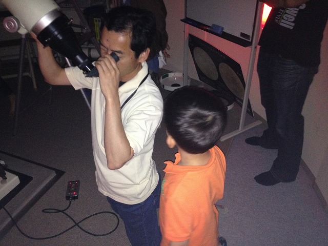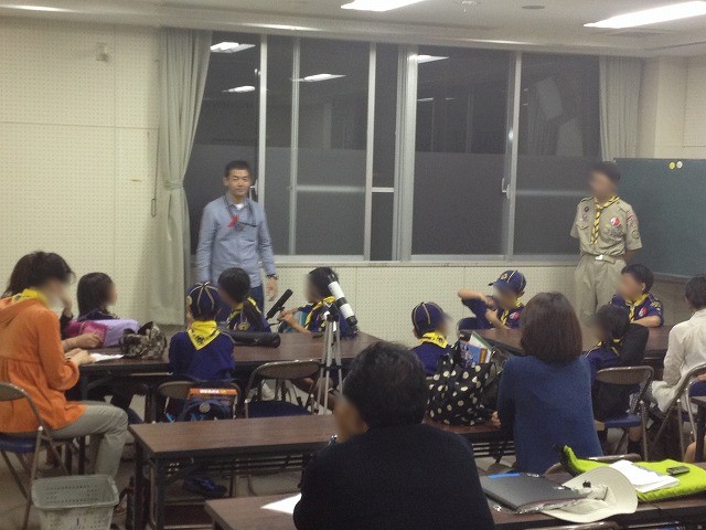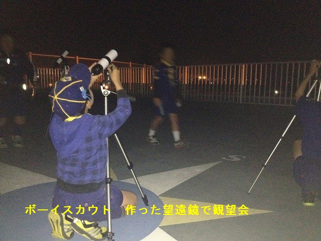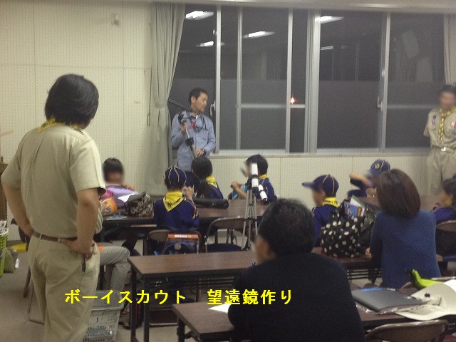 5月10日 西与賀コミュニティーセンター(佐賀市天文台) 定期観望会に加えボーイスカウトの活動で望遠鏡キットの製作と観望会が行われました。ボイースカウトの望遠鏡のほうは主に松林氏が担当しました。全員完成したところで屋上広場で観望会の開始です。カメラ三脚に固定した望遠鏡で月や木星、土星などを見ました。最初は導入に苦労ていましたがどうにか観望ができました。残念ながら三脚の用意ができなかった人は手持ちでほとんど見えてなかったようでした。定期観望会に合流して20cm屈折でも観望してもらいましたが見え味の差には驚いていました。定期観望会の方は園田氏が主に担当して、初めて来た人や常連の人も交えて家族的な雰囲気で行われました。小1くらいの男の子が月のクレーターがあるのを見てチーズのようだと表現してくれたのが印象的でした。常連の男の子は研究ノートにメモをとってました。その弟君はホワイトボードに星のスケッチを描いてくれました。また、天文TOMITAに行って買った双眼鏡を見せてくれました。子供さんでも使いやすい良い双眼鏡を選んでいただいたようで良かったです。全体的に子供さんが多く、久しぶりに大変賑やかで活気のある観望会でした。 観望対象:月、木星、火星、土星、おとめ座γ 来訪者:約40名(ボーイスカウト28名含) 担当者;園田、松尾/松林 報告・写真:松尾 写真 1、2、3 、4 、5 、6 |