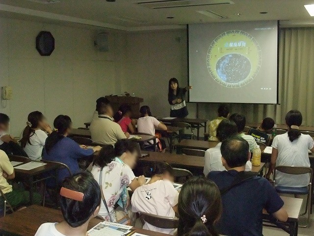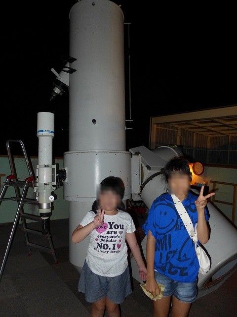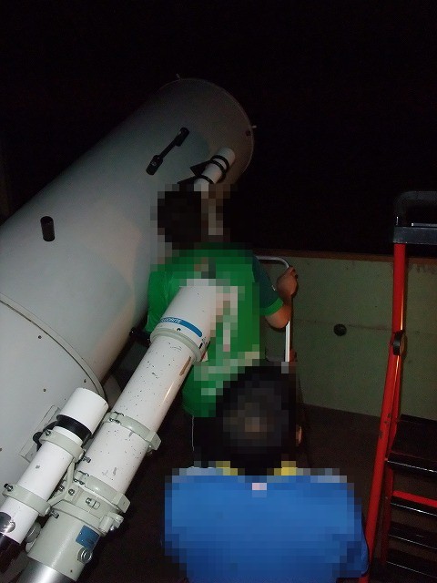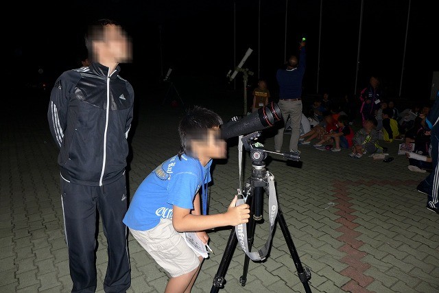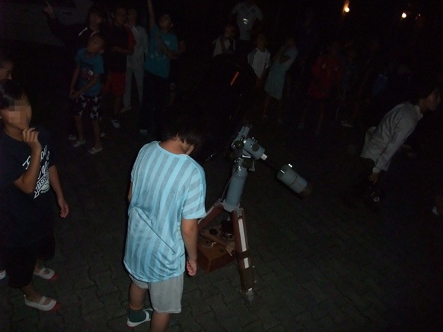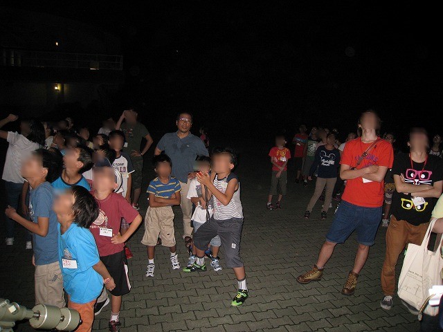 8月23日 春日市子供会様 北山少年自然の家 雲が多く望遠鏡での観望が危ぶまれる天気でしたが、視聴覚室で副島さんが説明をしている間に晴れ間から土星が見えてきたので、早々に外に出てもらい土星の観望をしてもらいました。 望遠鏡で見る土星にみなさん感激していました。短めの観望会だったので望遠鏡での観望は土星のみでしたが、一人の子が夏の大三角がわかるということでポインターを使って案内をしてもらったり、 20時15分ごろに国際宇宙ステーションが見れたので、みんなで手を振ったりして楽しみました。 観望対象:土星、夏の大三角、国際宇宙ステーション 参加者:約73名(春日市内の小学5年生64名、大人9名) 担当:副島、市川、松林 報告・写真:松林 写真 1、2、3、4、5 |