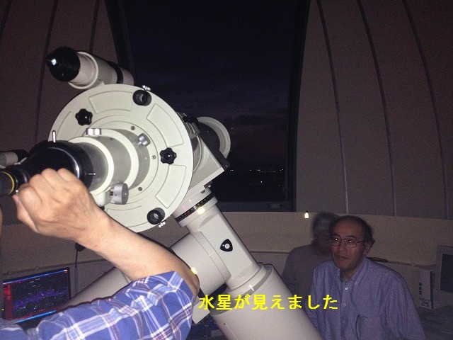 5月31日 西与賀コミュニティーセンター(佐賀市天文台) 黄砂と大気汚染物質の影響もあり低高度の透明度は良くありませんでした。松林氏が早めに来て水星を導入してくれてました。開始時間の20時ころまでどうにか観望できました。肉眼では月例2.7の細い月と近くの木星がきれいでした。今日は観望会の時間内で4個の惑星が見られたので得した気分でした。各惑星に望遠鏡を向ける途中で2重星などに寄り道して観望しました。各2重星では色の対比や位置関係の違いを見てもらいました。ソンブレロは淡くて初めて見る人には少しわかりにくかったようです。最終30分は土星に集中しました。シーイングがよかったので高倍率で見ることができました。カッシーニの間隙もはっきり見えてお客さんにはじっくり楽しんでもらいました。最後まで居られたお客さんにはスマホでの撮影を試してもらいましたが残念ながら難しかったようです。コンデジで松林氏が撮影には成功しましたので、次回はデジカメでチャレンジしてもらいと思います。観望会終了後に屋上広場西側でスカイクオリティメーターでの計測値は18.95でした。ドーム内温度は26度でした。 観望対象:月、水星、木星、土星、火星、カストル、かに座ιしし座γ、おとめ座γ、ソンブレロ、からす座Wトライアングル 来訪者:9名内子供2名 担当者;松林、近藤/園田、松尾 報告・写真:松尾 写真 1、2、3 、4 、5 |