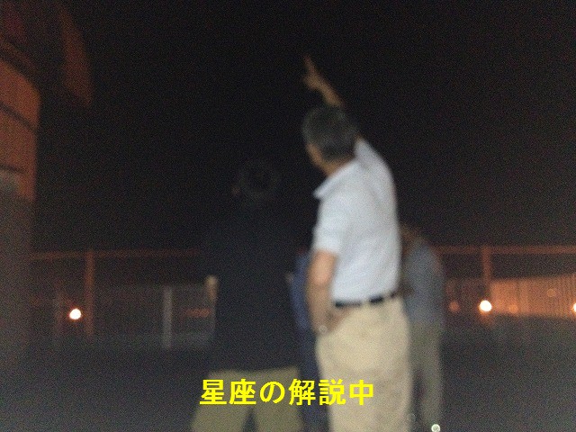7月26日 大和町青少年健全育成協議会様(ウエルネス大和) 19時から、副島さんが室内においてステナビを使って本日観望する星や観望会での注意点などの説明を行いました。19:30過ぎに外の広場に出てもらいましたが、 まだ太陽が沈んだばかりで外は明るく星は見えませんでしたが、会員みんなで土星を探しました。しばらくすると土星が見え始めたのでそれぞれの望遠鏡で土星を 見てもらいましたが、すぐに近くにあった雲に隠されてしまいました。雲の合間からほかの明るい星も見え始めてきたので星座の説明などをして、時々雲の合間から 見える土星を望遠鏡で見てもらいました。全体に雲が多くなかなか思うように観望できませんでしたが、土星の輪を見てみなさん喜んでおられました。また、終わり頃には アルビレオやM13なども見てもらいました。途中で、人工衛星も見ることができ ました。 観望対象:土星、M13,アルビレオ、M7,M8,M22 そのほか お客様:約70名 担当者:副島、市川、小柳、中村ミ、松本、松林 報告・写真:松林 写真 1、2、3 、4 |