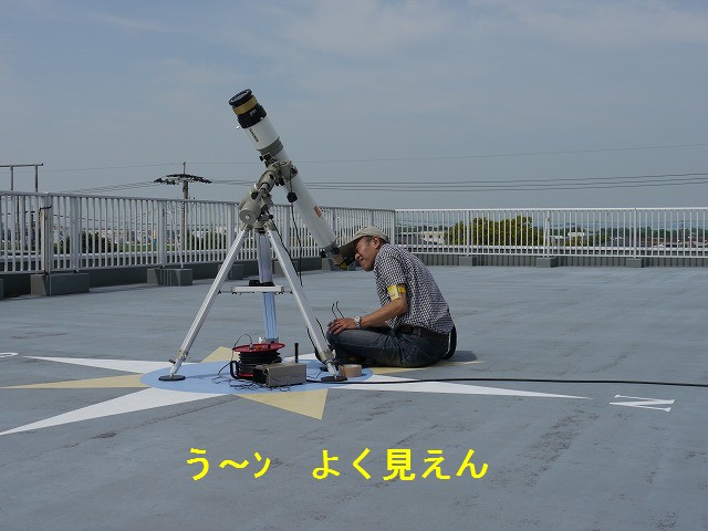 6月14日 西与賀コミュニティーセンター(佐賀市天文台) 開始時間前から空全体に雲が広がり望遠鏡を木星方向に向けてましたが結局見えませんでした。星野村の星の文化館天文クラブから2名のお客様が来られました。一時的でしたが、火星と土星がうす雲の間から見てもらいました。20cm屈折でみた惑星の見え味を堪能していただけて良かったです。会員も天文談義をして楽しい時間でした。初めて来てもらった親子連れの方は雲が多かったので何も見ることができず帰ってもらったのが残念でした。いつもの常連さんが来られた時には、かろうじて土星が見えていました。園田会員からいつもの男の子に望遠鏡の架台がプレゼントされました。宇宙科学館望遠鏡もこれで固定できるので喜んでいただけたようです。ちゃんと研究ノートに書入してました。観望会の間はほとんど全天が曇りで、土星が見えただけでも奇跡的でした。 観望会終了後に屋上広場西側でスカイクオリティメーターでの計測値は17.14でした。ドーム内温度は24度でした。 観望対象:土星、火星、うしかい座ε 来訪者:9名内子供4名 担当者;近藤、松尾/園田、松本 報告・写真:松尾 写真 1、-、3 、4 、5 |