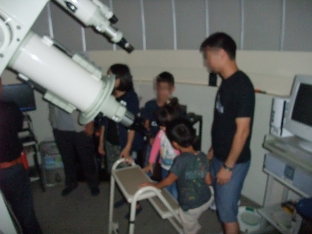 7月19日 西与賀コミュニティーセンター(佐賀市天文台) 夏休み最初の観望会で子供連れの来訪者が多かったです。4年生の夏休みの課題なのか夏の星座のプリントを持ってきてメモする子供さんもいました。最初は雲もあったのですが、21頃になるとだんだん良くなってきました。20cm屈折で火星や土星を中心に見てもらい、屋上広場では星座の説明が行われました。21:30頃になると、天の川も確認できる程度になりました。はくちょう座辺りを通る人工衛星も見えました。人が多かったのでドーム内は暑かったです・ 観望会終了後に屋上広場西側でスカイクオリティメーターでの計測値は19.33でした。ドーム内温度は最初41.2度で最後は29.1でした。 観望対象:土星、火星、NGC6231、M4 来訪者:20名内子供10名 担当者;内川、松林、園田/松尾 報告・写真:松尾 写真 1、2、3 、4 、5 、6 |